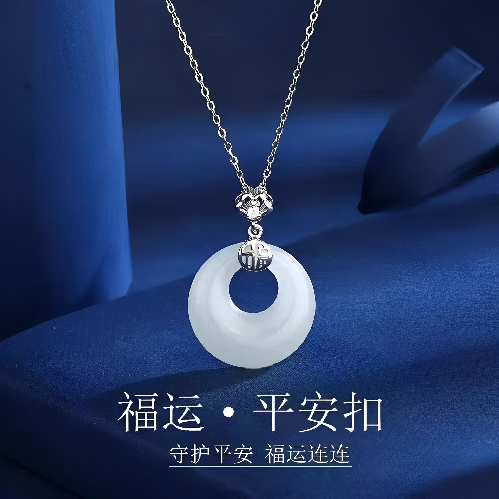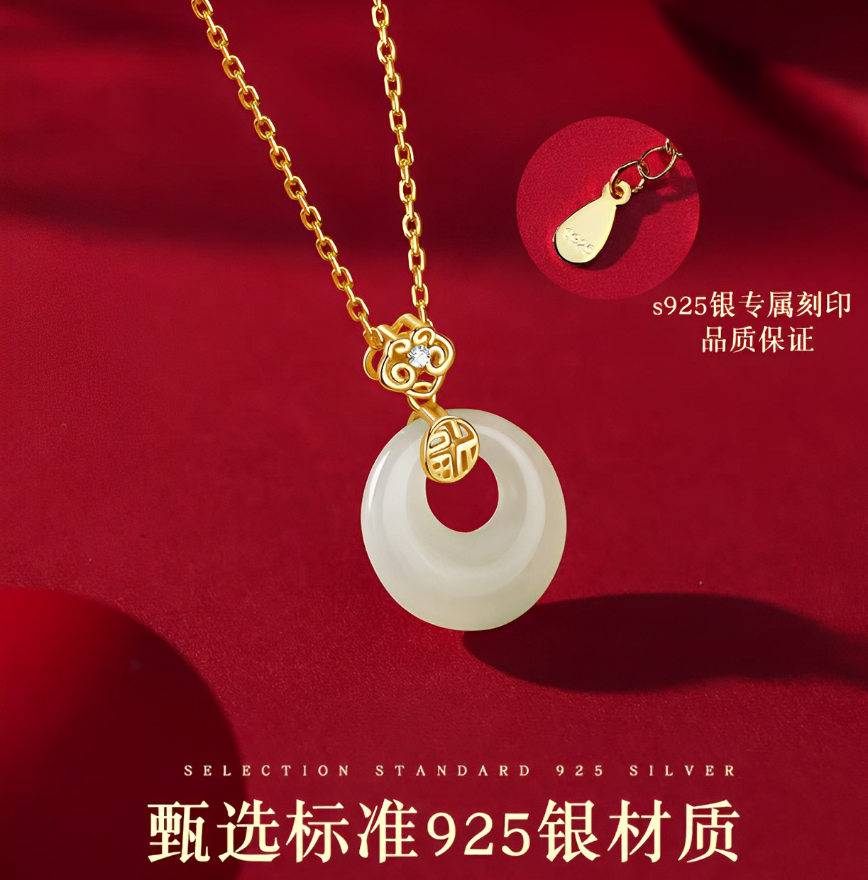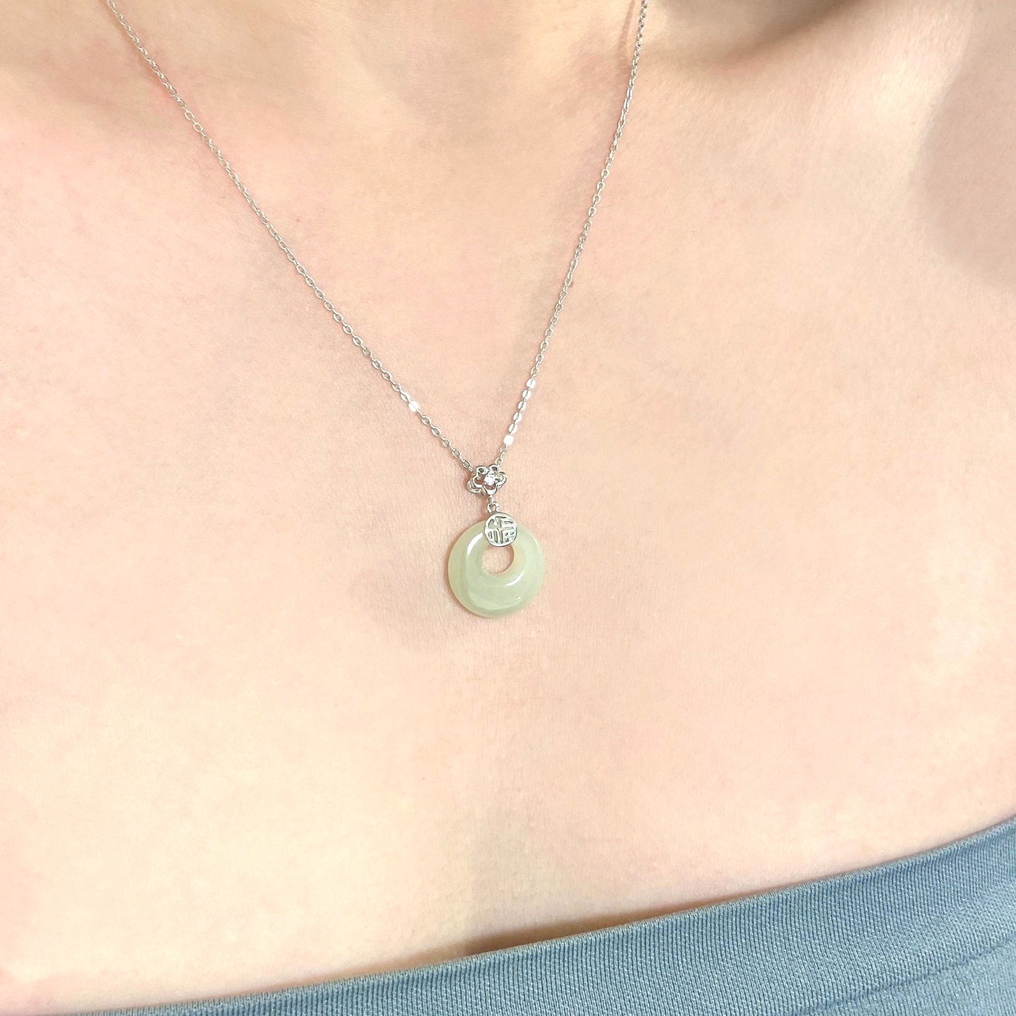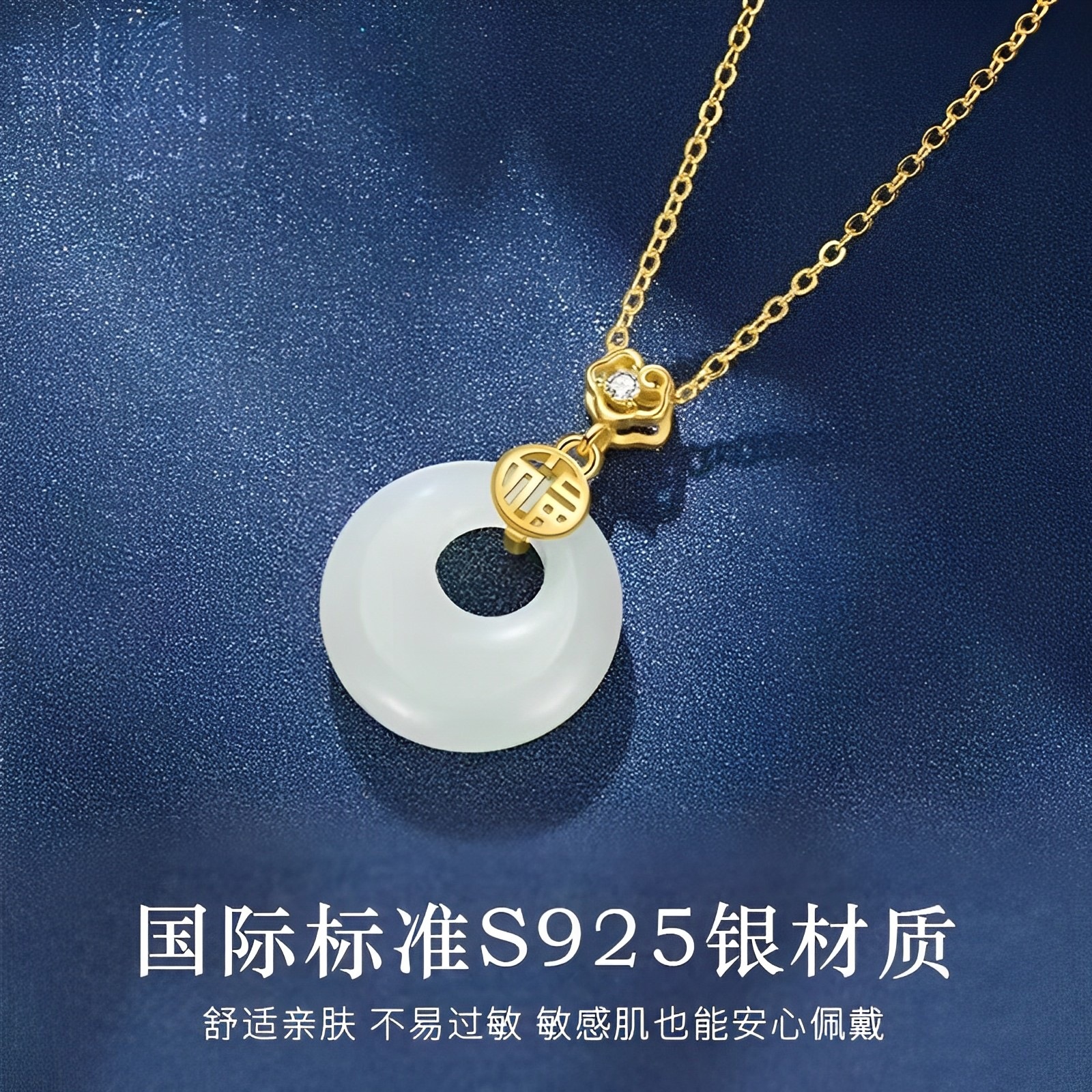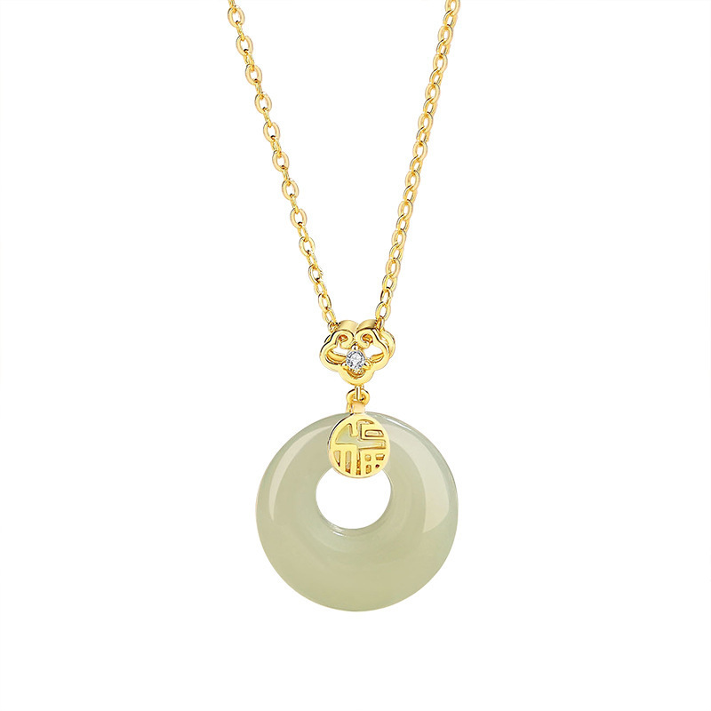 宫主s925纯银福气和田玉平安扣项链 女宫廷风小众天然吊坠新中式
