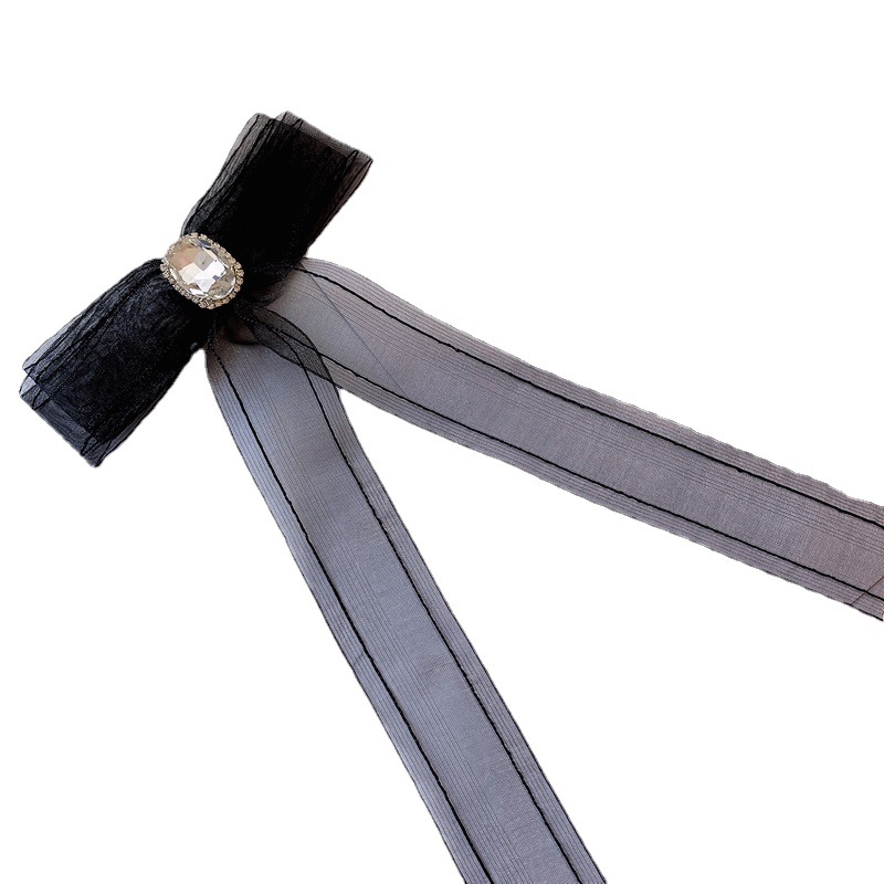 韩国蕾丝水晶镶钻纯色领花薄纱衬衣领结配饰女气质蝴蝶结衣服配饰