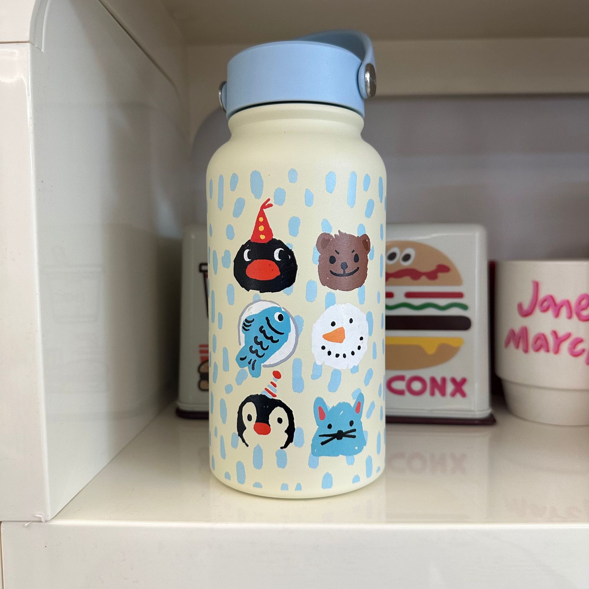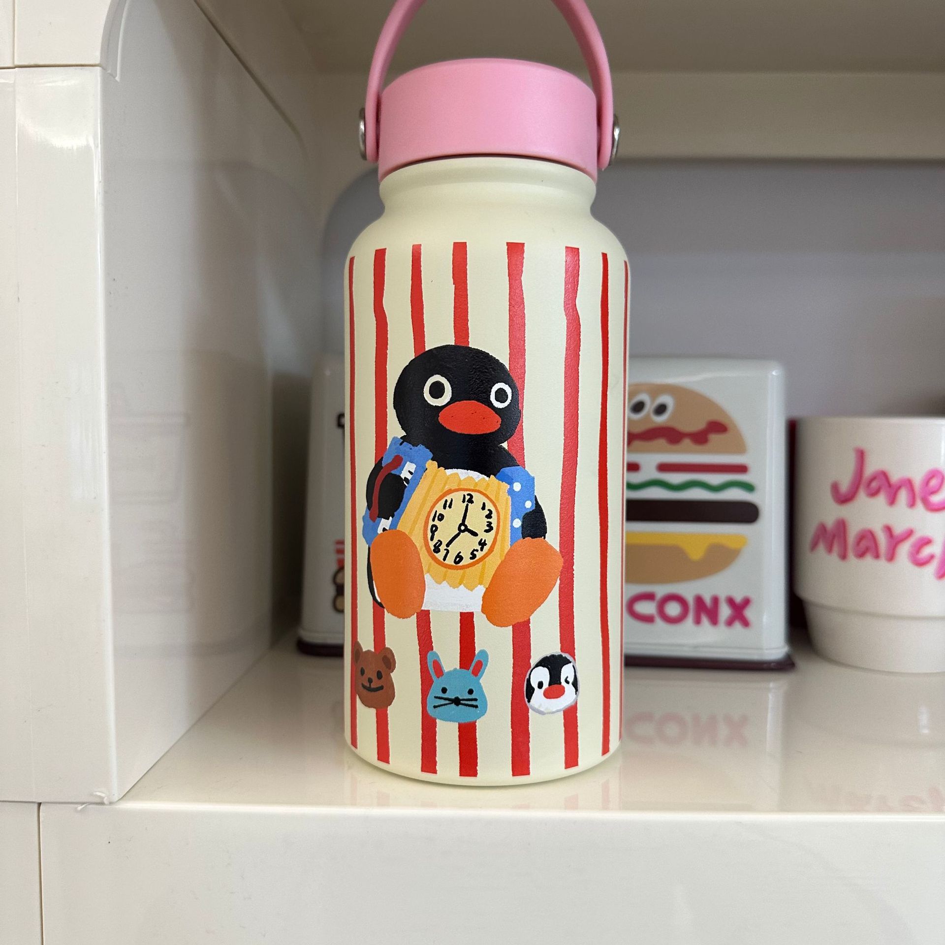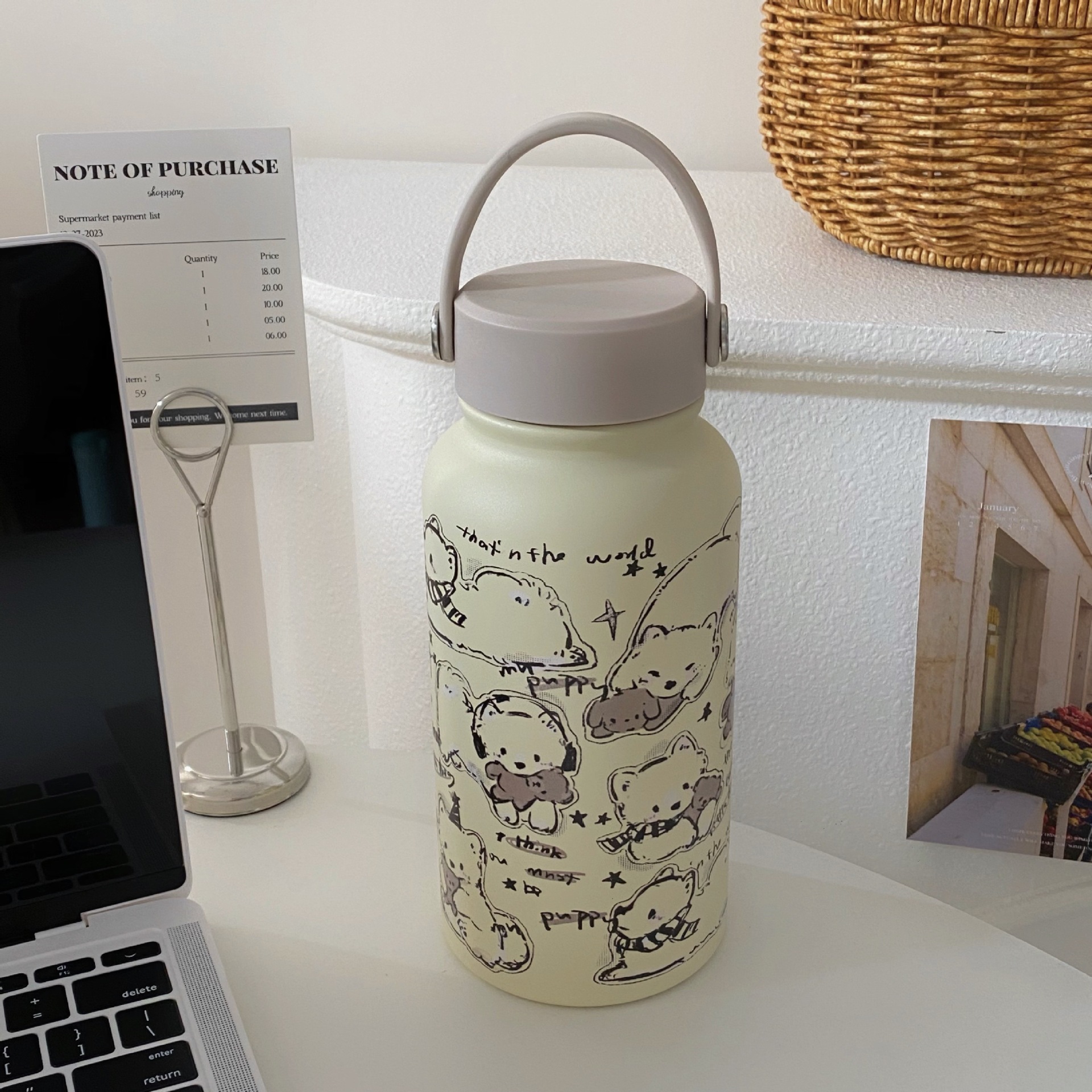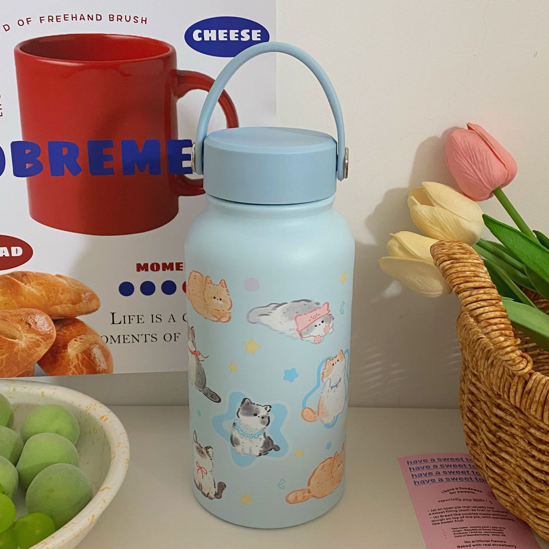 可爱卡通保温杯女新款大容量手提杯子不锈钢水杯随身便携水壶