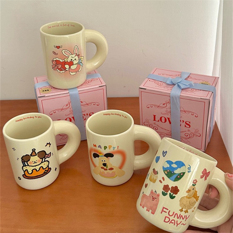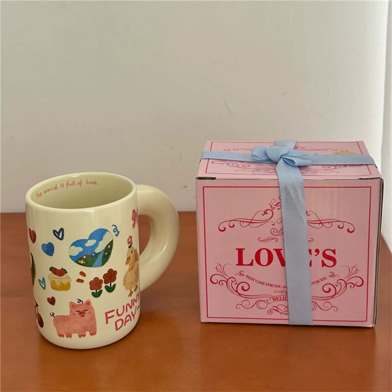 礼盒装原创可爱涂鸦卡通小熊杯子陶瓷杯马克杯少女心水杯生日礼物