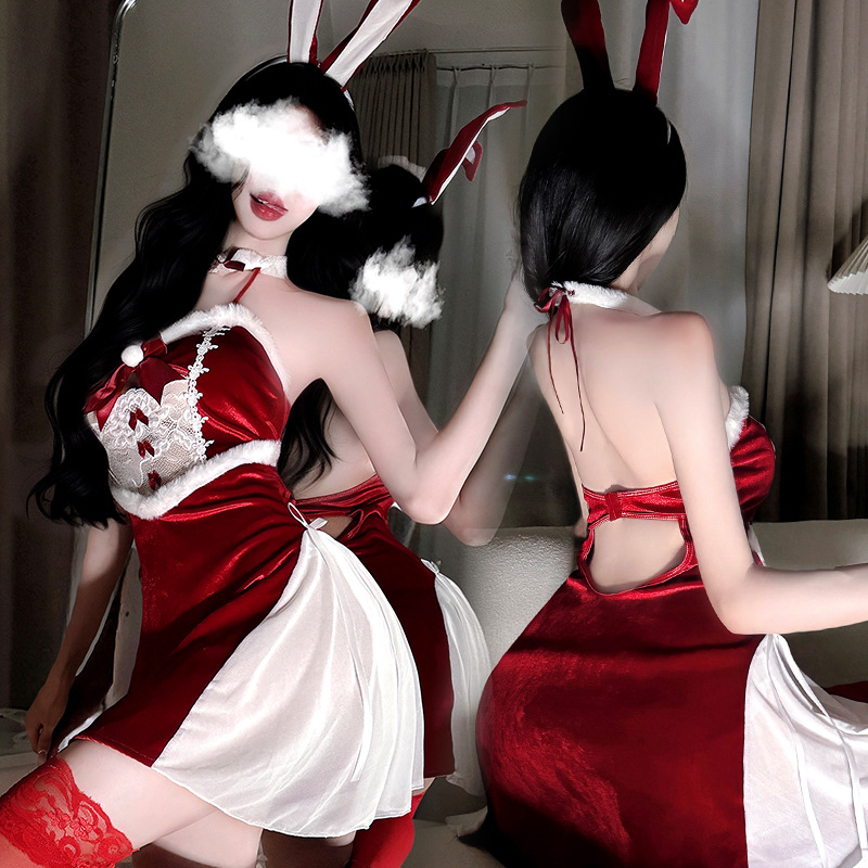 妖媚情趣内衣性感圣诞装兔女郎cos女仆连体猫女郎套装女