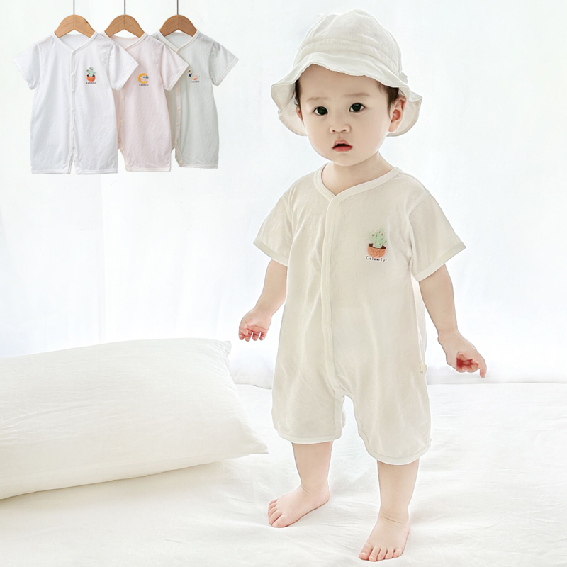 夏季纯棉连体衣外出服新生儿短袖哈衣男女宝宝薄款透气爬服家居服