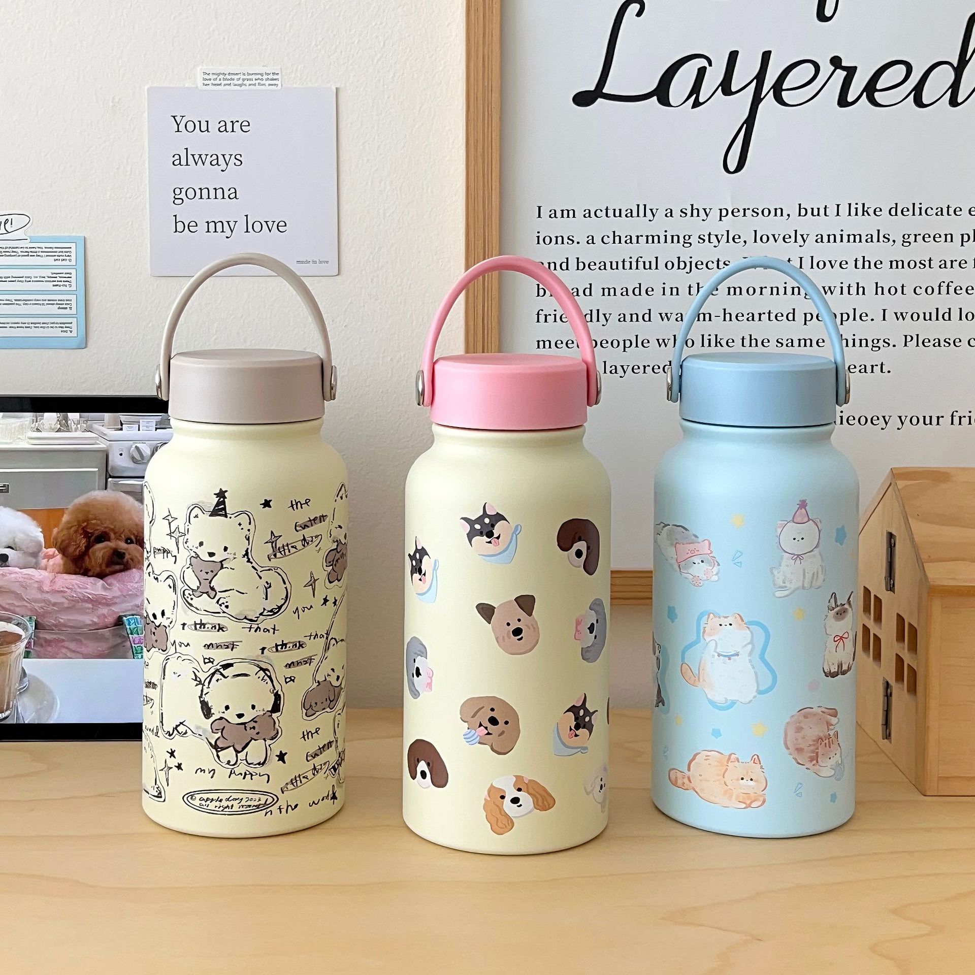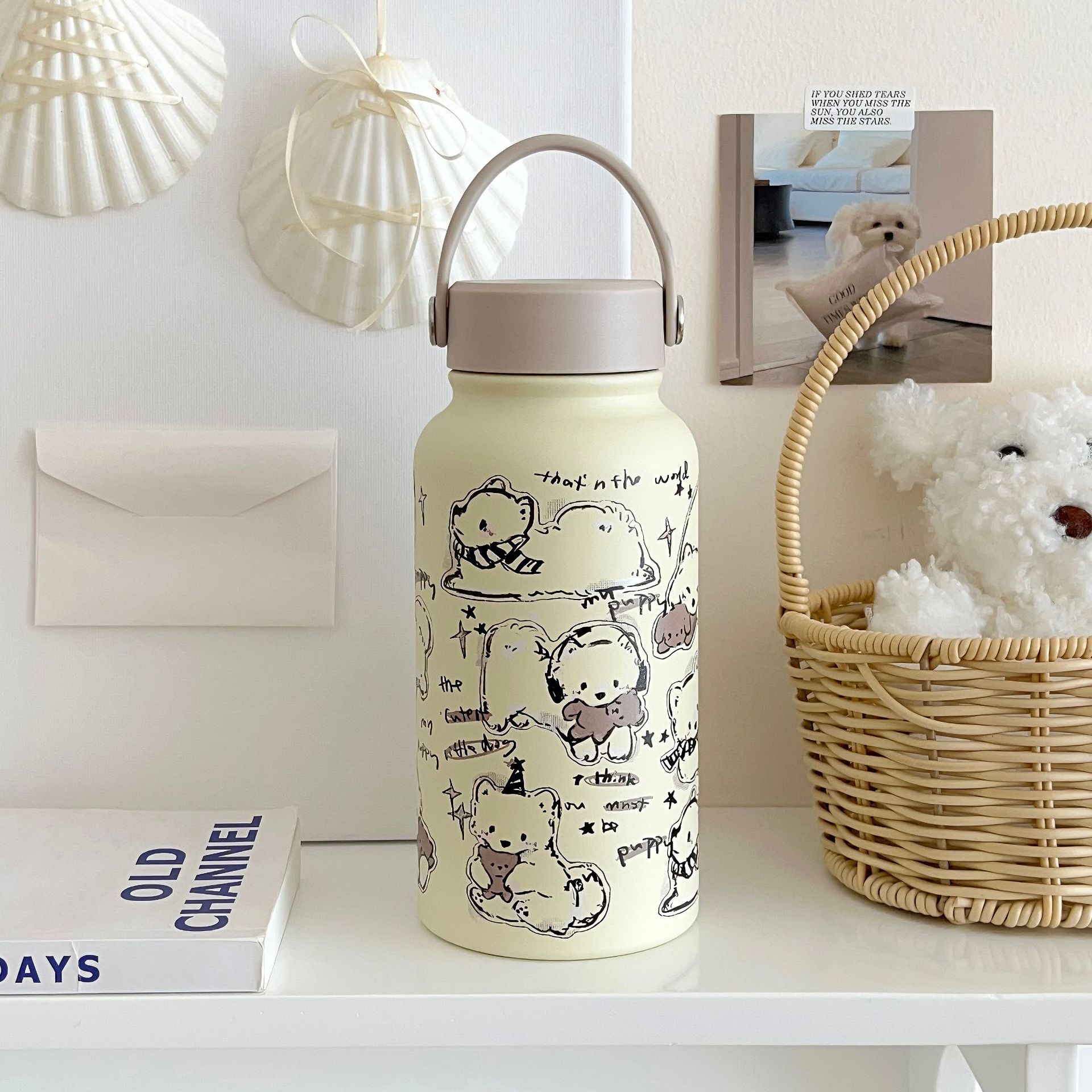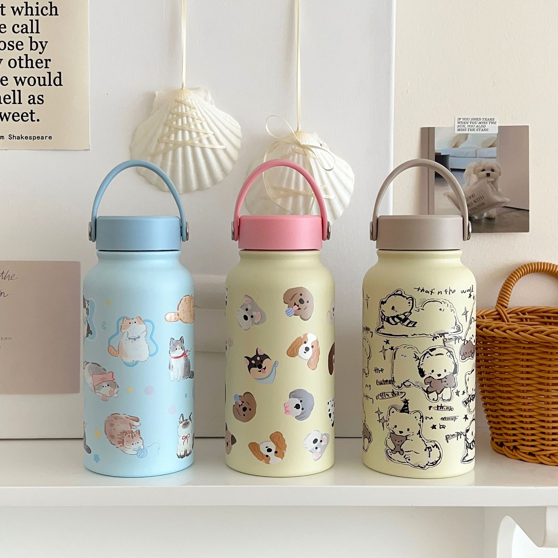 治愈奶油色~可爱手提保温杯便携随行水杯女生高颜值大容量咖啡杯