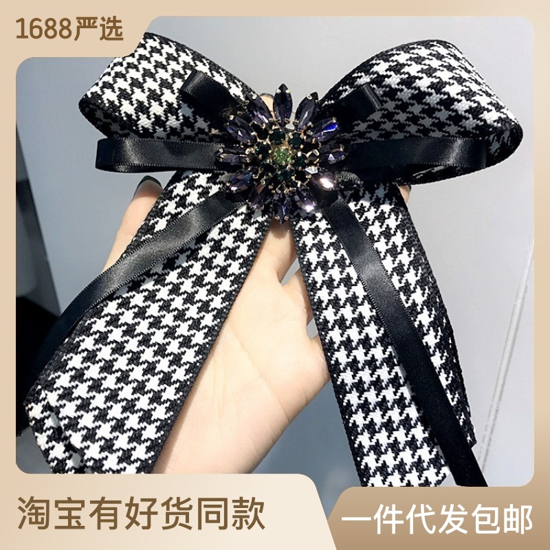 韩版高级学院风水钻宝石千鸟格大号蝴蝶结领花领结衬衣领针别针女