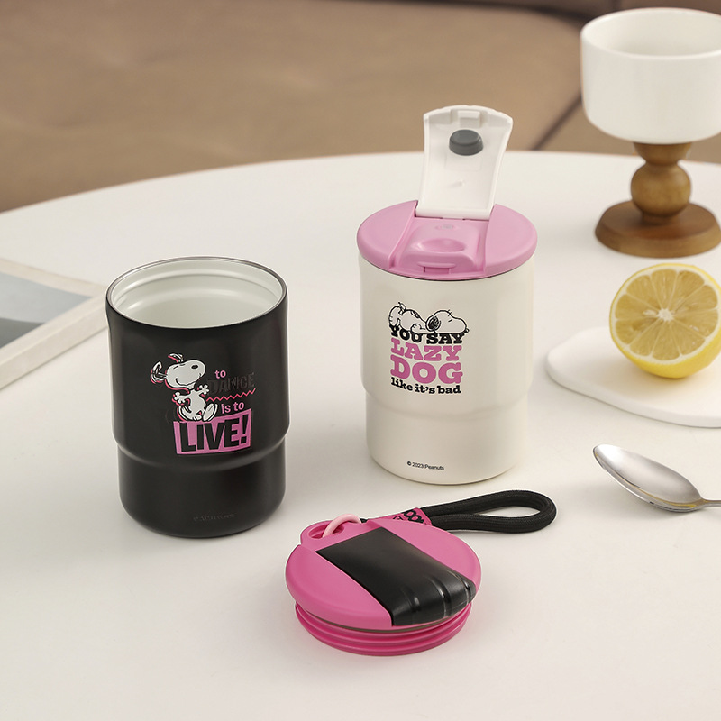 史努比保温杯咖啡杯男女316内喷陶瓷内胆水杯便携随行杯保冷杯子