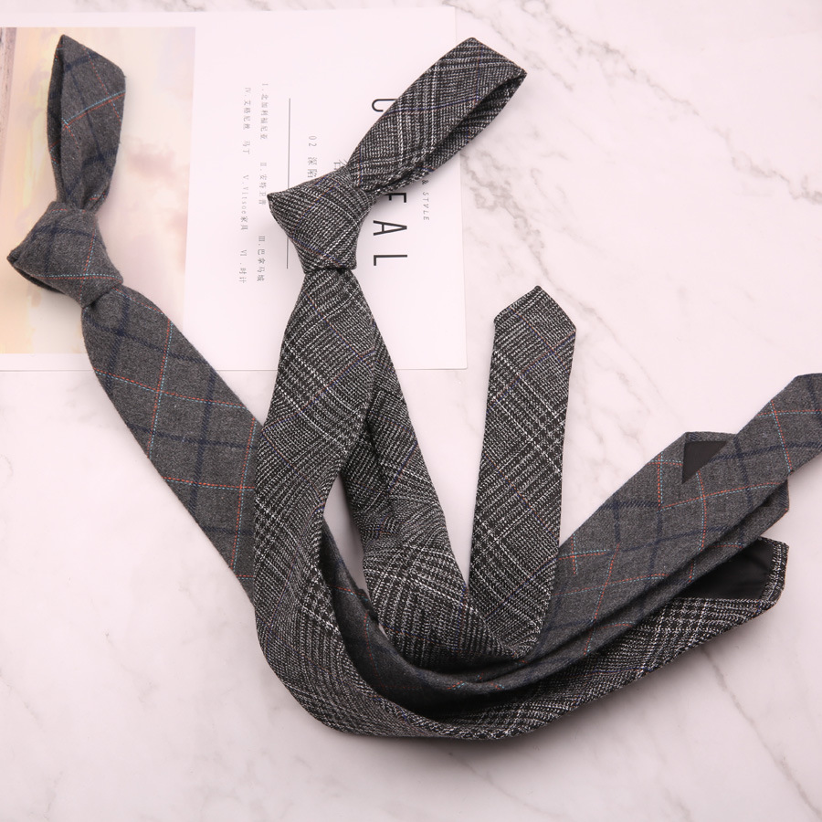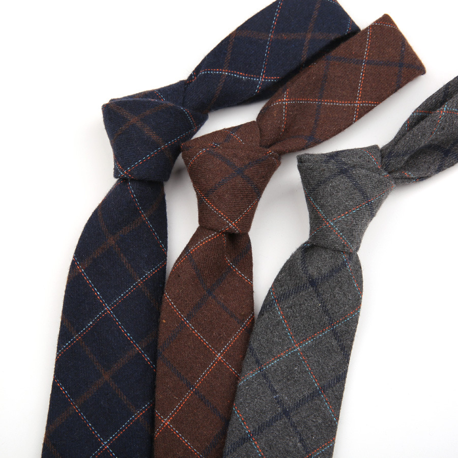 男士仿羊毛领带6CM窄款复古英伦欧美风休闲商务手打格子花纹
