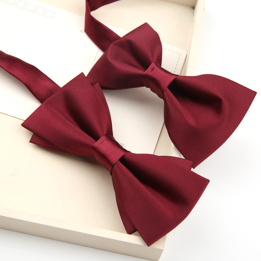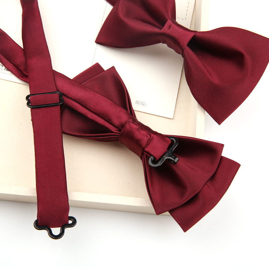 婚礼结婚新郎伴郎酒红英伦蝴蝶结纯色男士领结正装礼服
