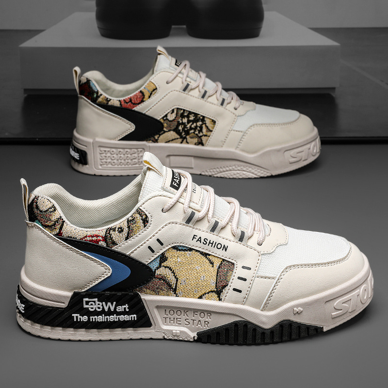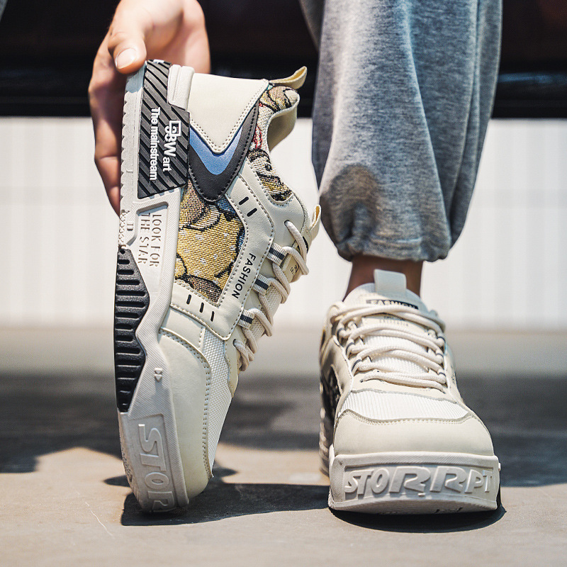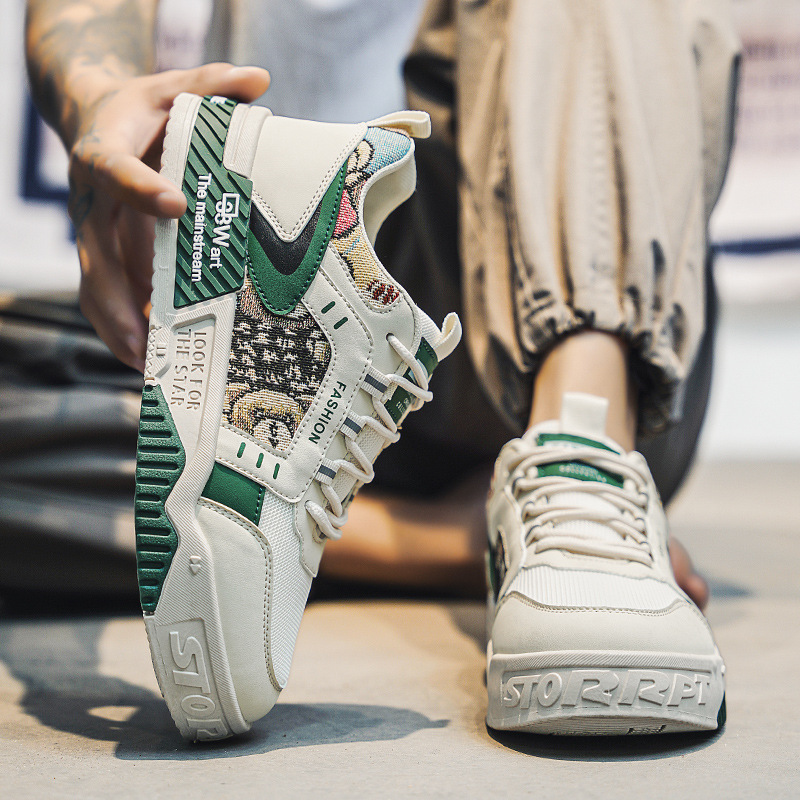 夏季新款男士低帮滑板鞋青少年学生网面运动小白鞋直播透气鞋