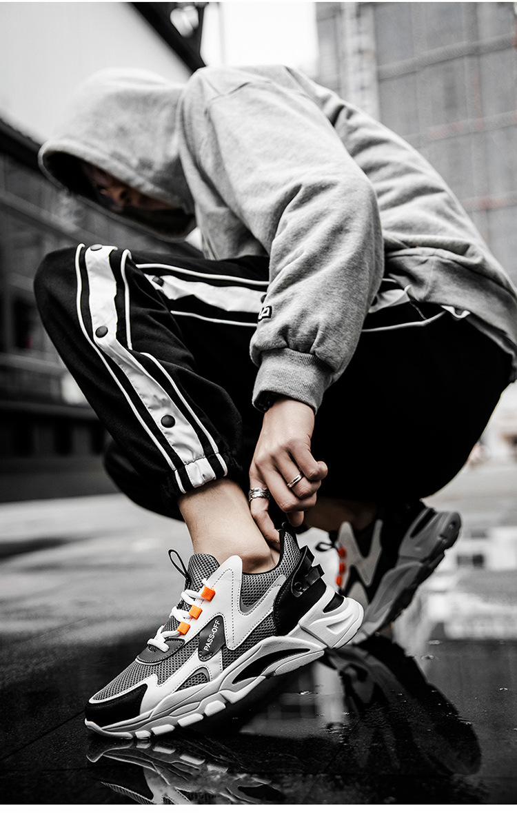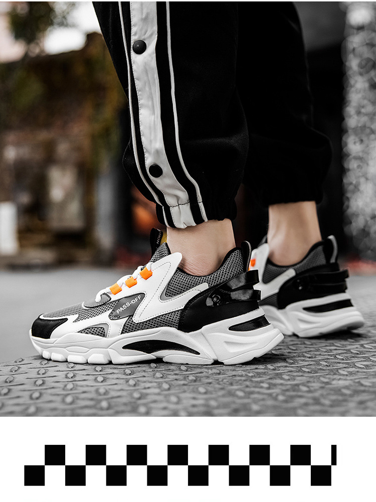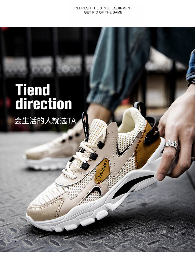 夏季新款男士厚底老爹鞋学生透气网面ins运动鞋直播走秀男鞋