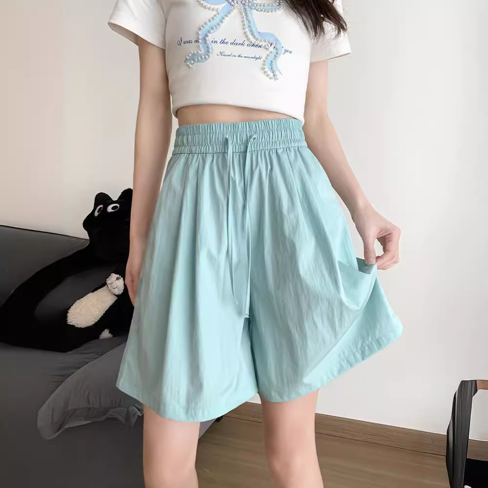 湖蓝色短裤女夏季2025年新款宽松阔腿山本裤休闲小个子冰丝五分裤
