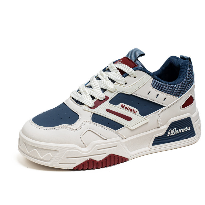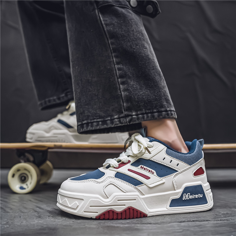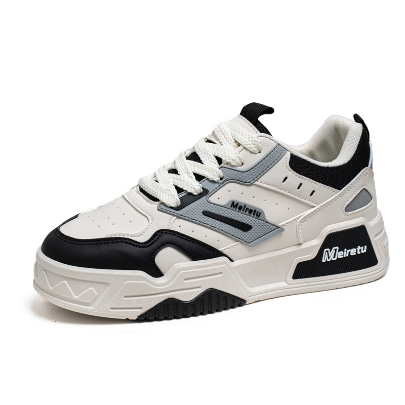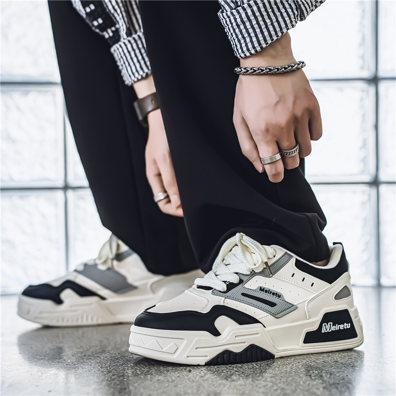 新款男士皮面低帮板鞋潮学生厚底小白鞋百搭直播小众运动男鞋