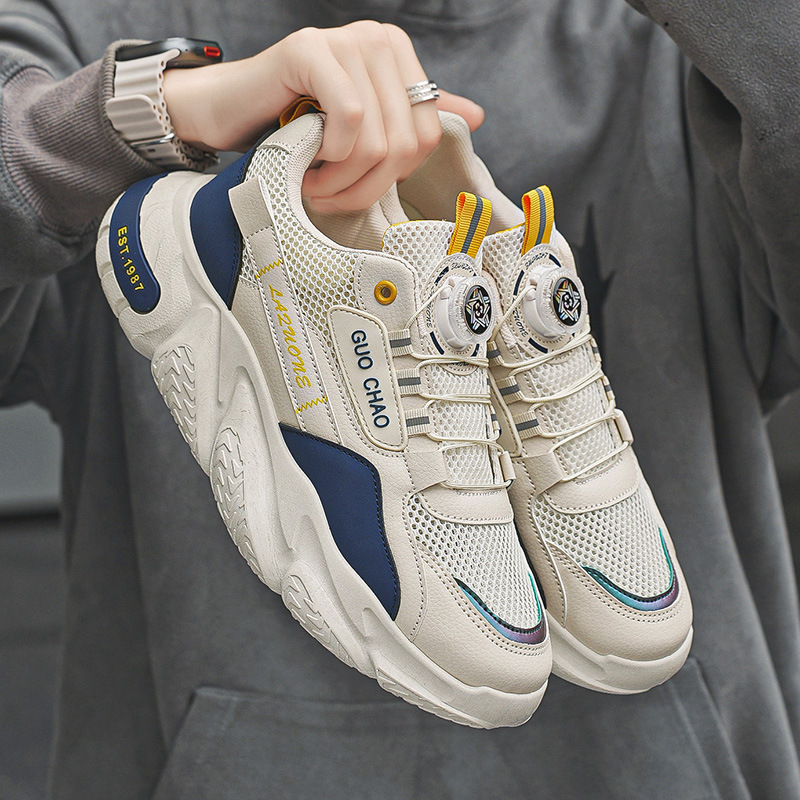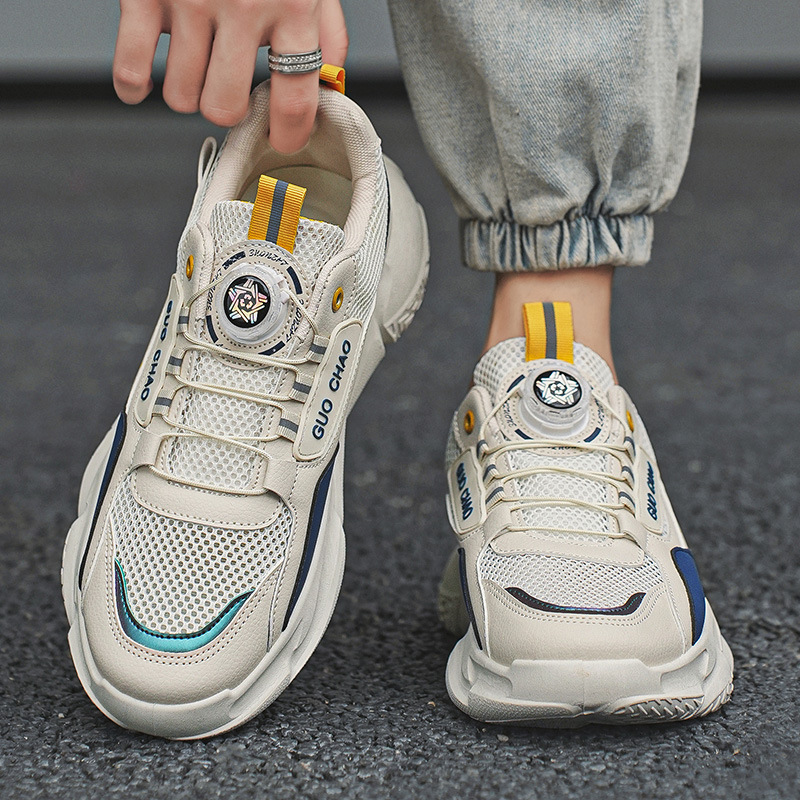 夏季新款男士厚底老爹鞋学生透气网面旋转扣运动鞋直播男鞋子