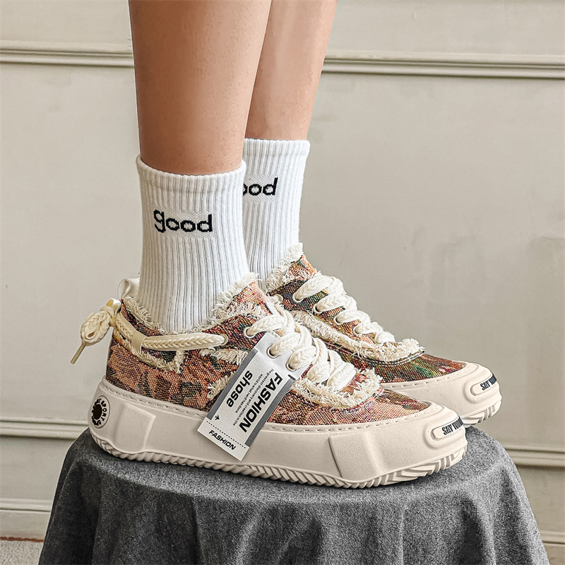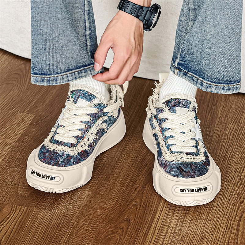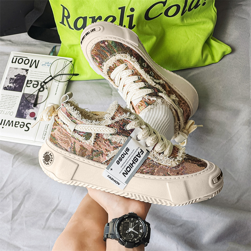 夏季新款男士低帮帆布鞋厚底学生滑板鞋直播乞丐运动小众男鞋