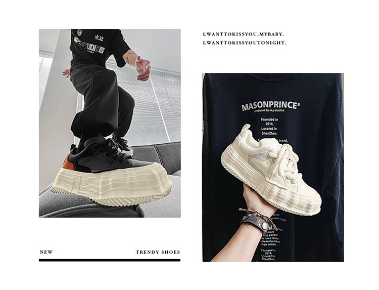 新款潮流运动百搭板鞋男士小众厚底增高休闲小白潮鞋