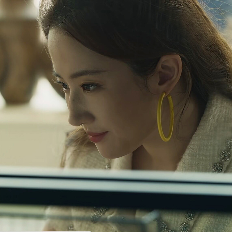 黄色耳环高级感复古气质大圈圈耳饰女