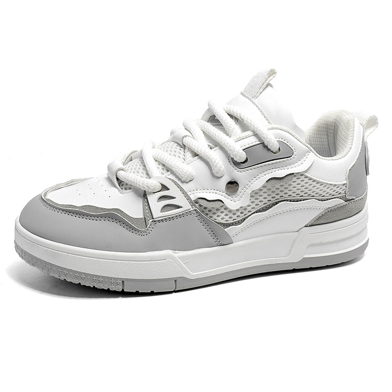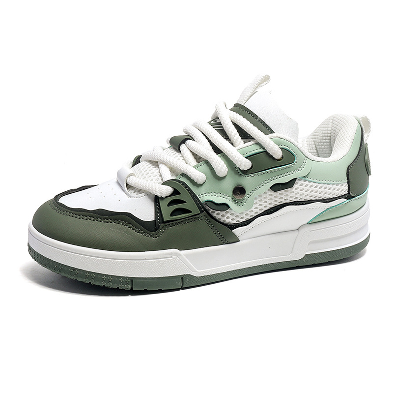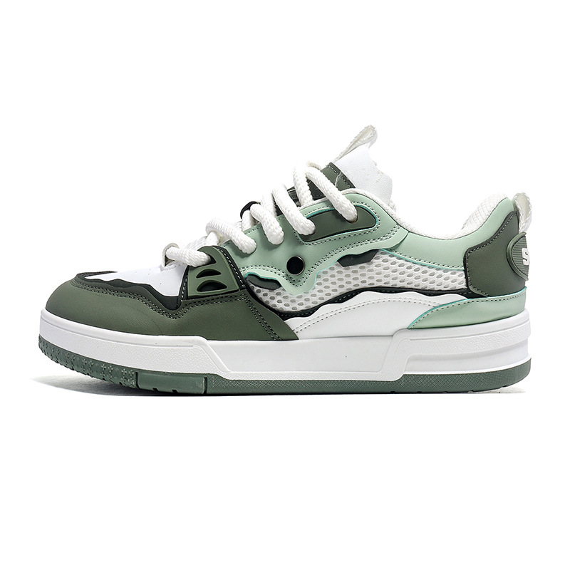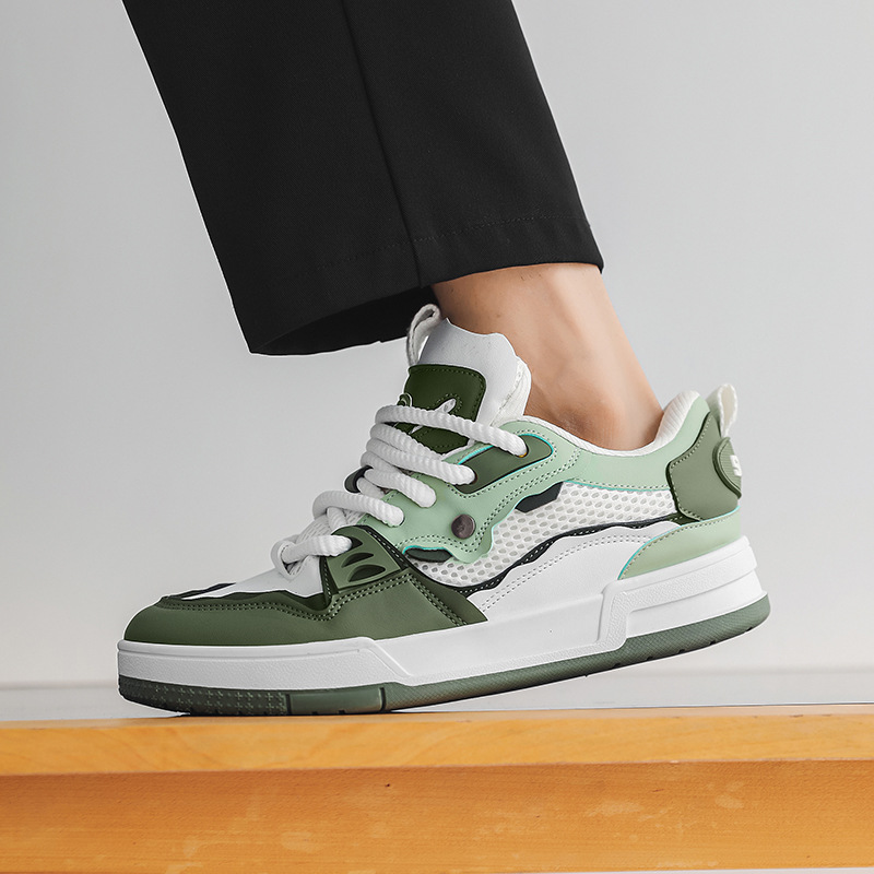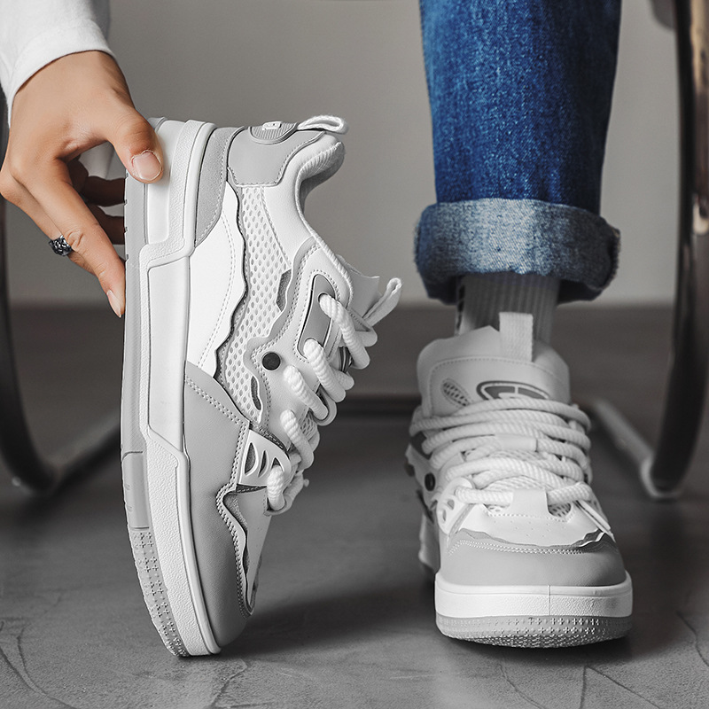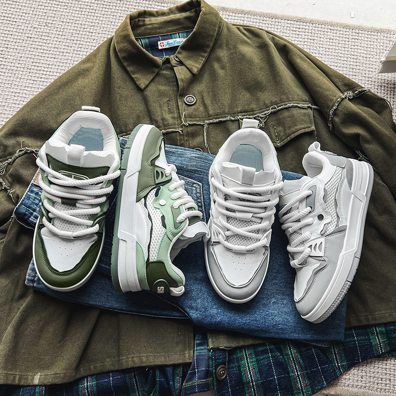 直播四季款皮面网布复古设计情侣日系板鞋增高休闲厚底小众男潮鞋