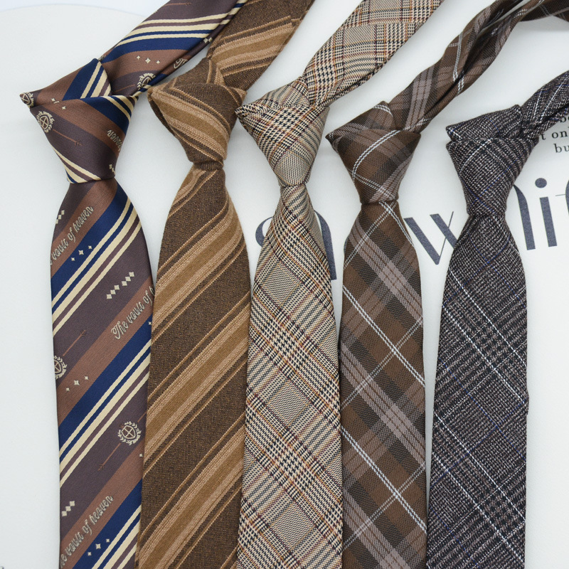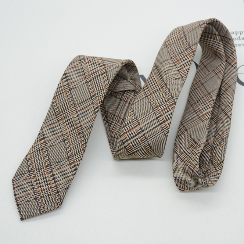 JK领带女韩版日系学院风复古棕色咖啡色学生卡其杏色手打款格子潮