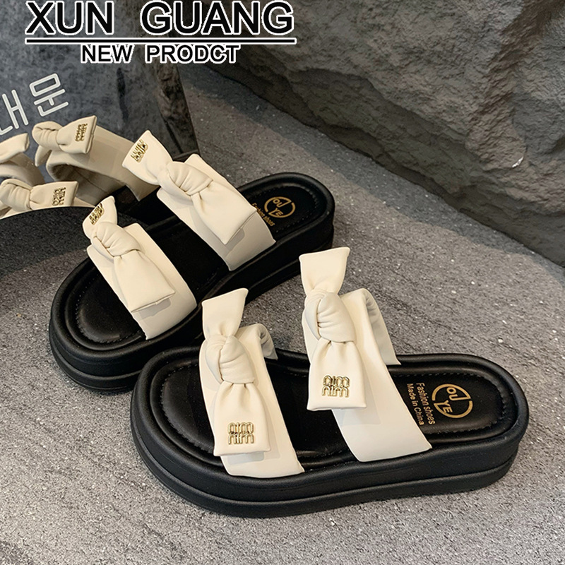 松糕厚底一字拖鞋女外穿夏季新款百搭蝴蝶结仙女风沙滩凉拖鞋