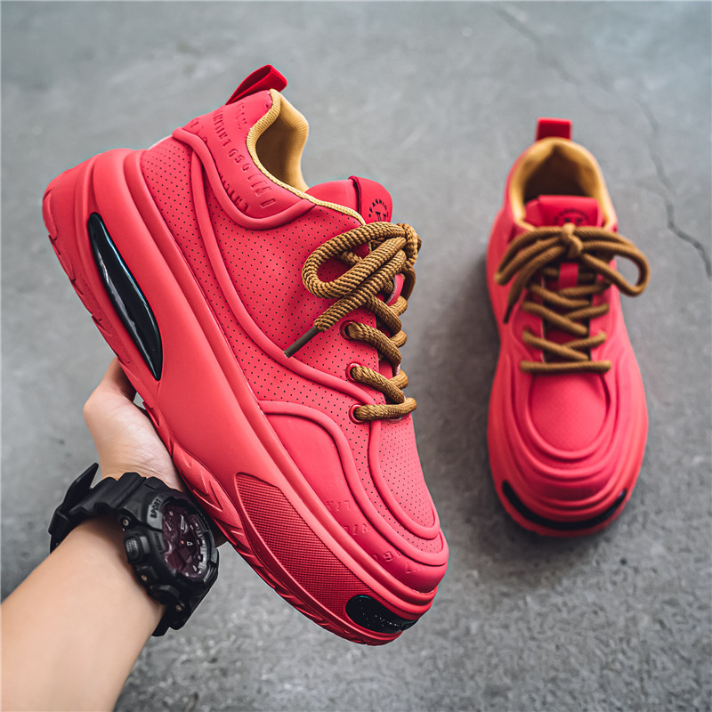 四季国潮男款骚红小众厚底ins板鞋港风厚底透气运动鞋男鞋潮