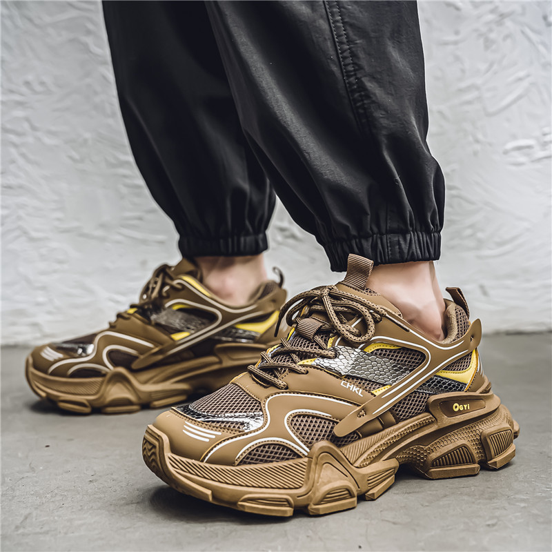 四季国潮风小众厚底ins网面老爹港风直播风工装户外运动鞋男