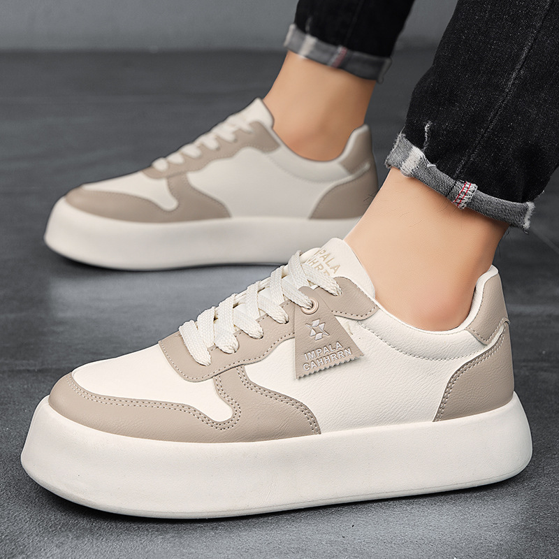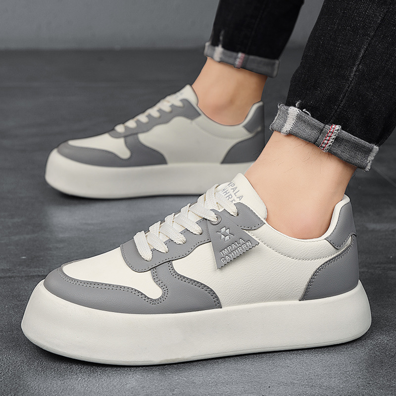 男鞋夏季新款板鞋男士学生平底休闲鞋皮面厚底增高青少年运动鞋子