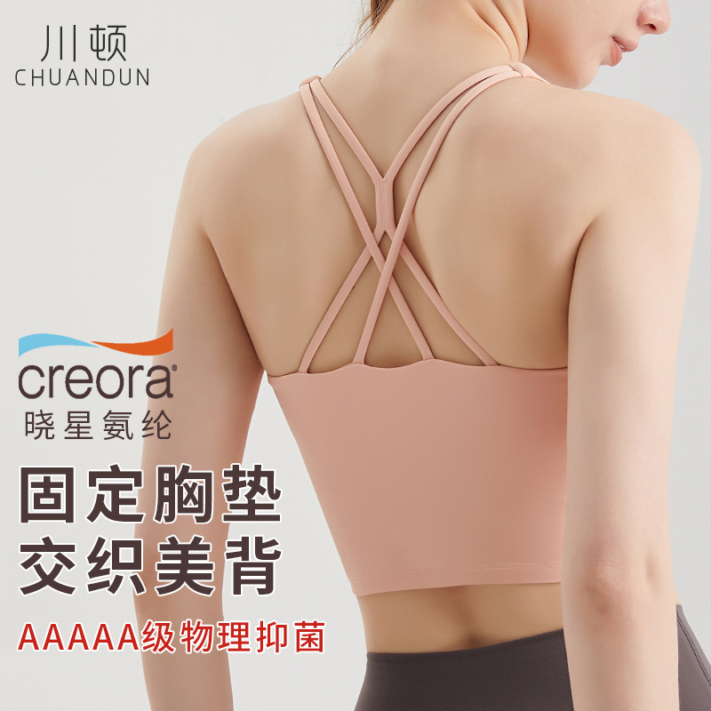 运动背心高强度一体固定杯外穿美背款交叉细肩带运动内衣女夏