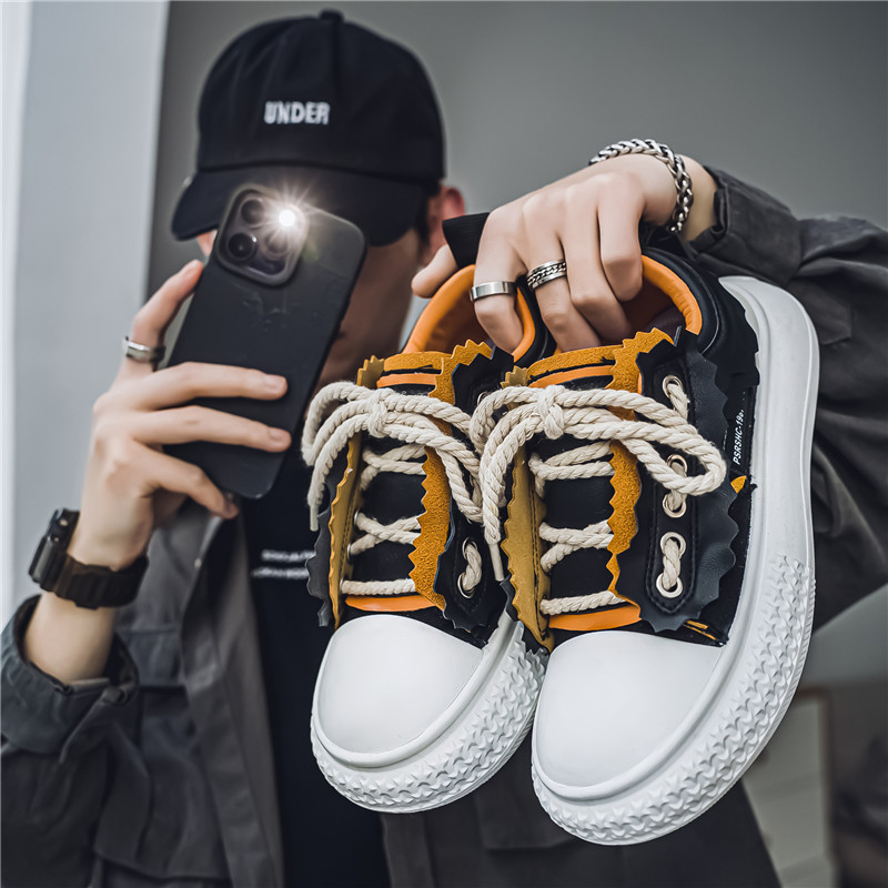 帆布鞋男夏季透气小众原创大头板鞋中学生运动防滑潮鞋子新款