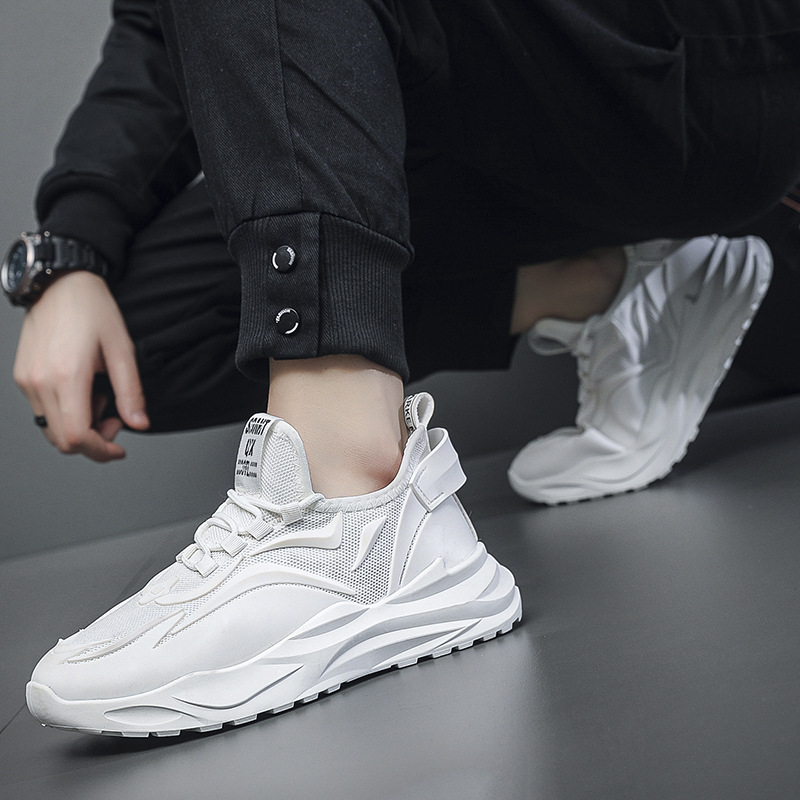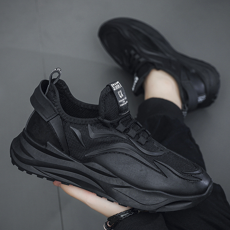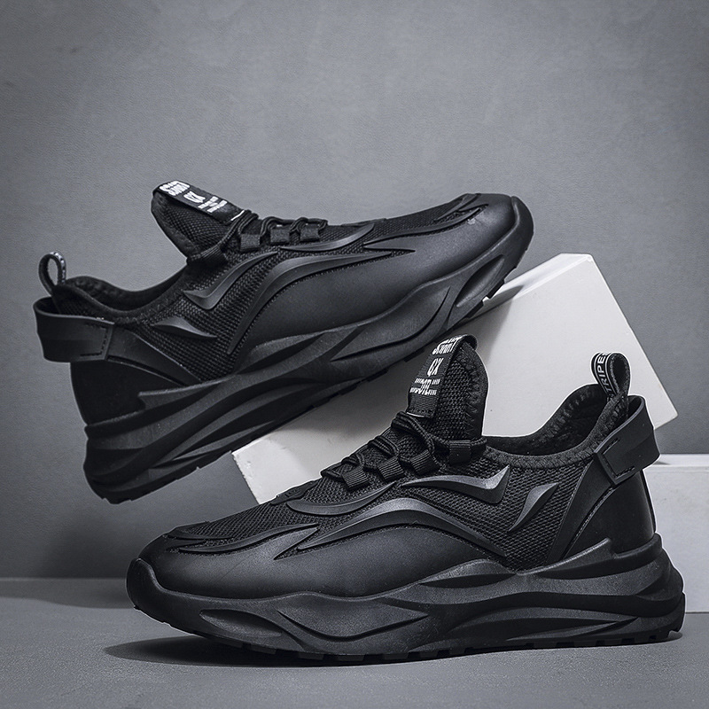 低帮透气系带厚底运动鞋四季款男士纯色小黑鞋学生户外跑步休闲鞋