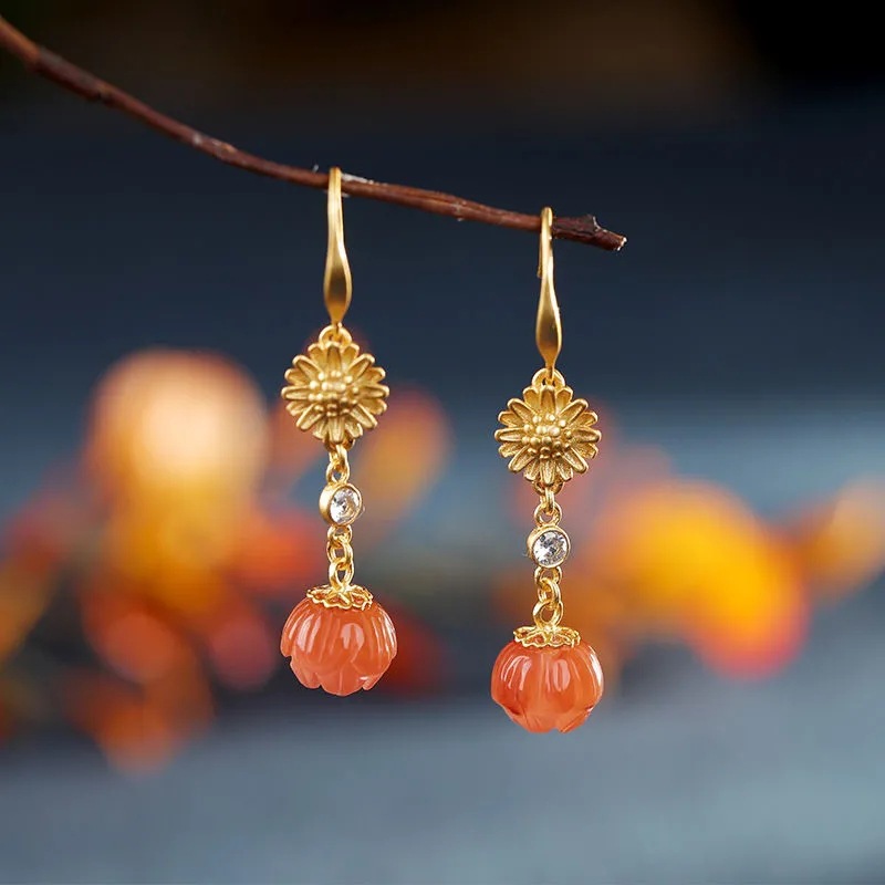 好柿莲莲S925银针镀金仿玛瑙耳环气质女士高级感优雅古风耳饰耳坠