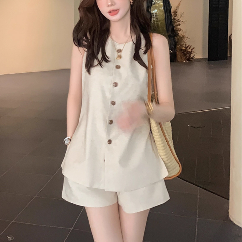 随心玩家老钱风慵懒马甲短裤两件套套装女夏穿搭一整套