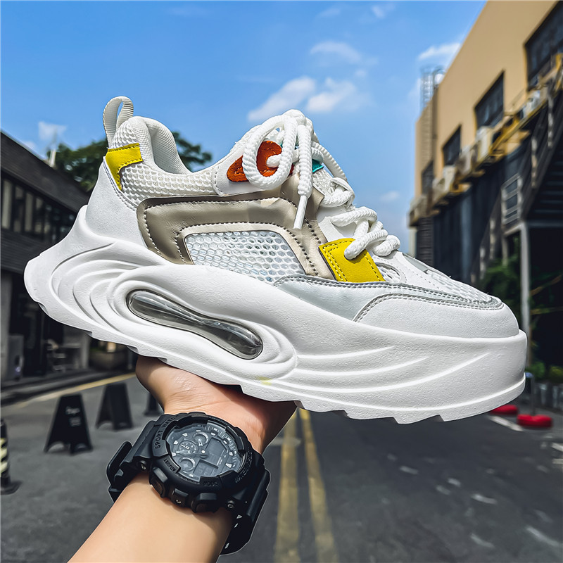 夏季透气运动鞋新款男士休闲网面镂空跑步鞋厚底增高百搭潮鞋