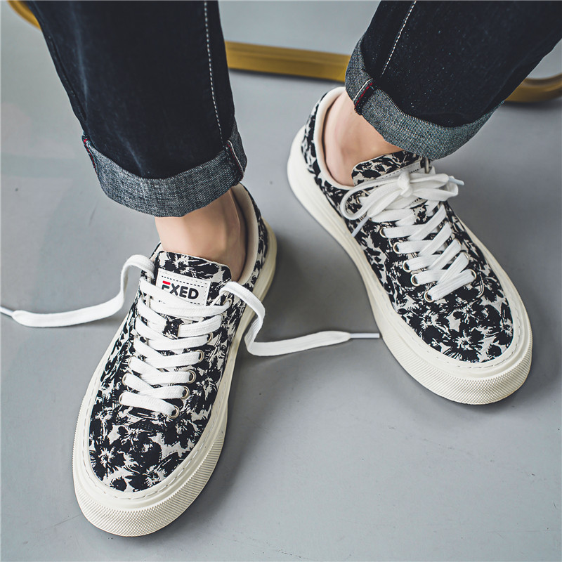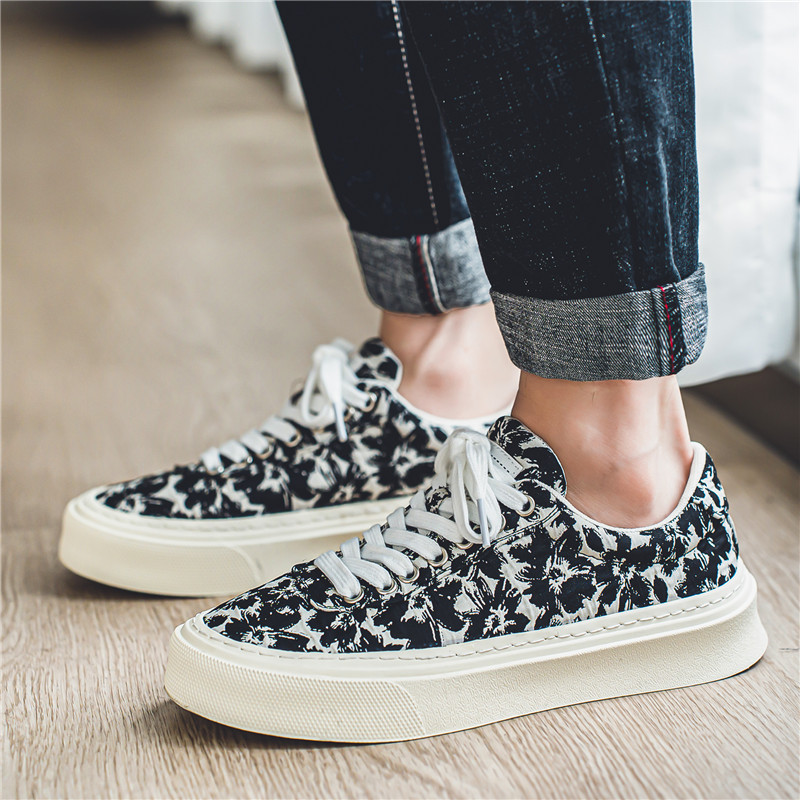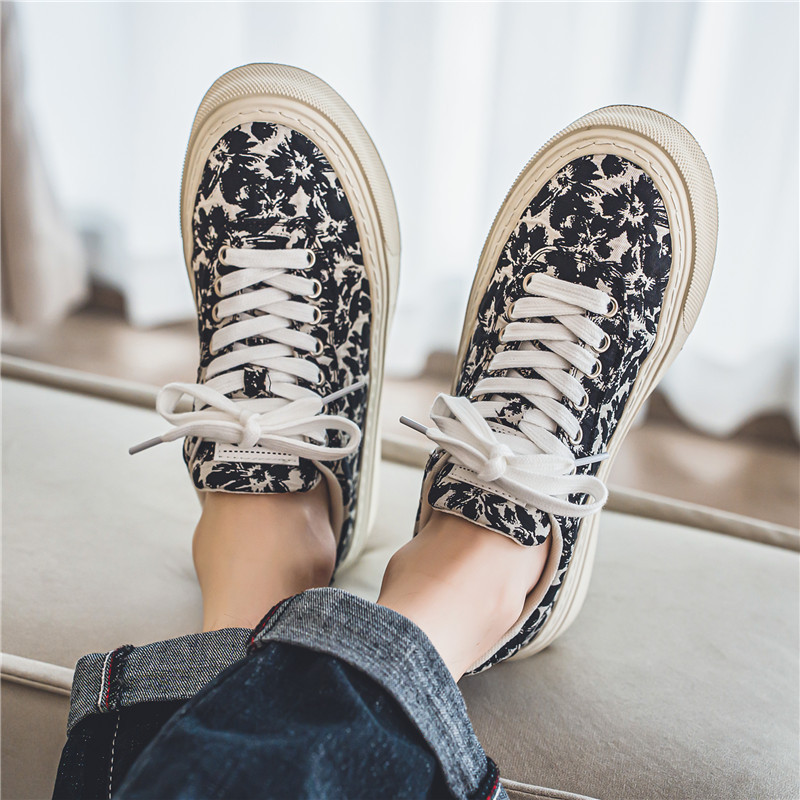 春秋新款休闲帆布鞋原宿风系带圆头社会鞋低帮户外运动厚底板鞋男