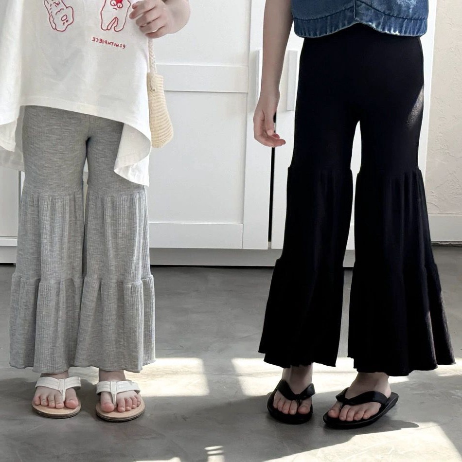 女童夏装休闲裤宝宝洋气儿童个性潮韩版拼接喇叭裤网红时髦阔腿裤