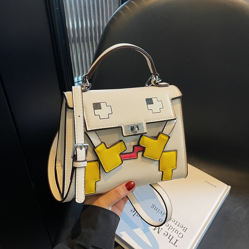 春季创意流行拼色凯莉包2025新款网红同款时尚单肩包百搭手提女包
