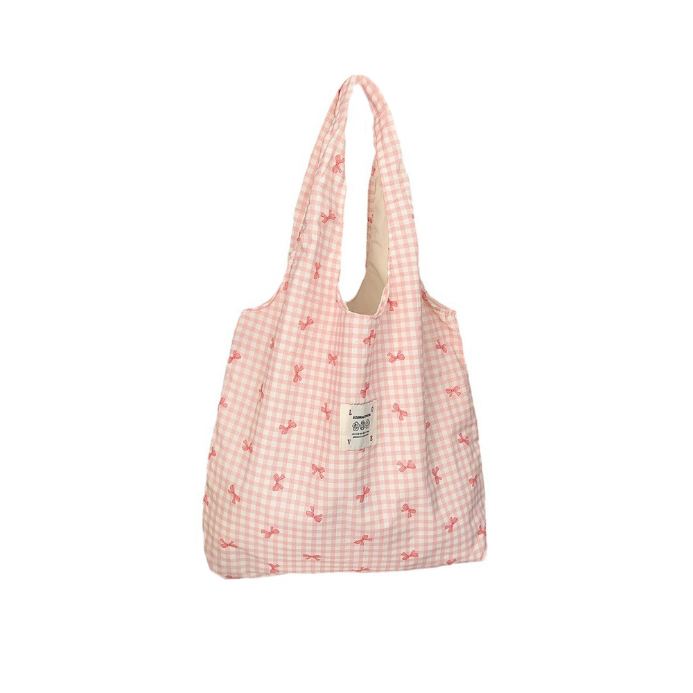 大容量简约印花蝴蝶结帆布包单肩包敞口女逛街购物袋背心包