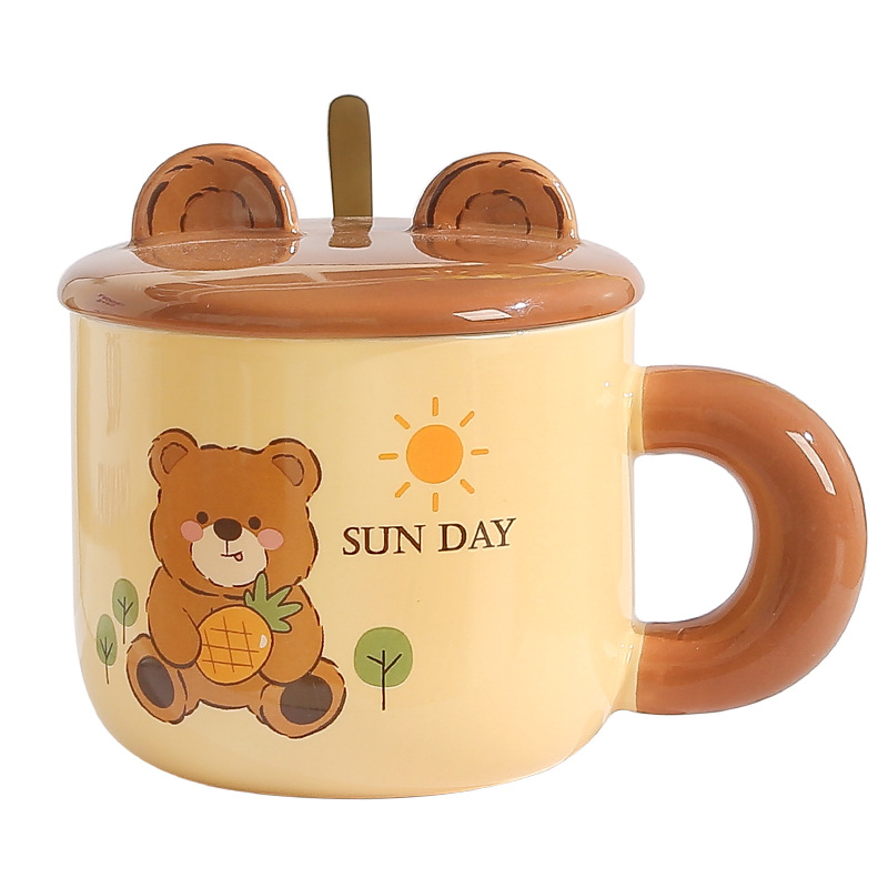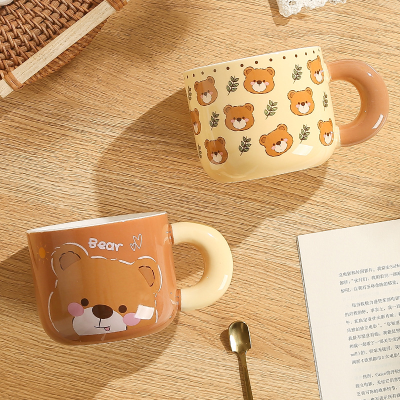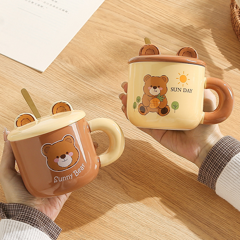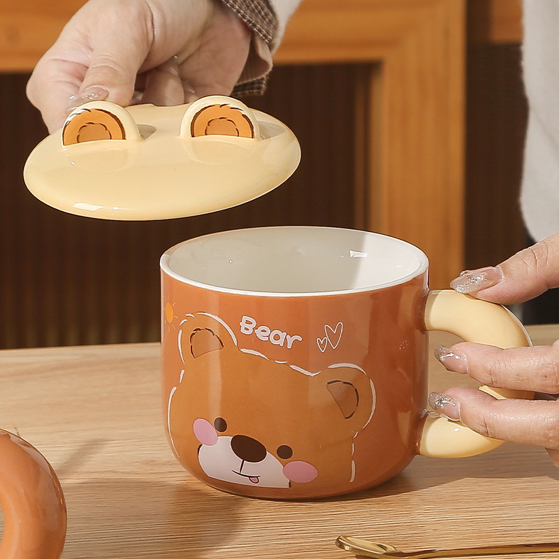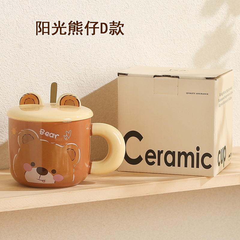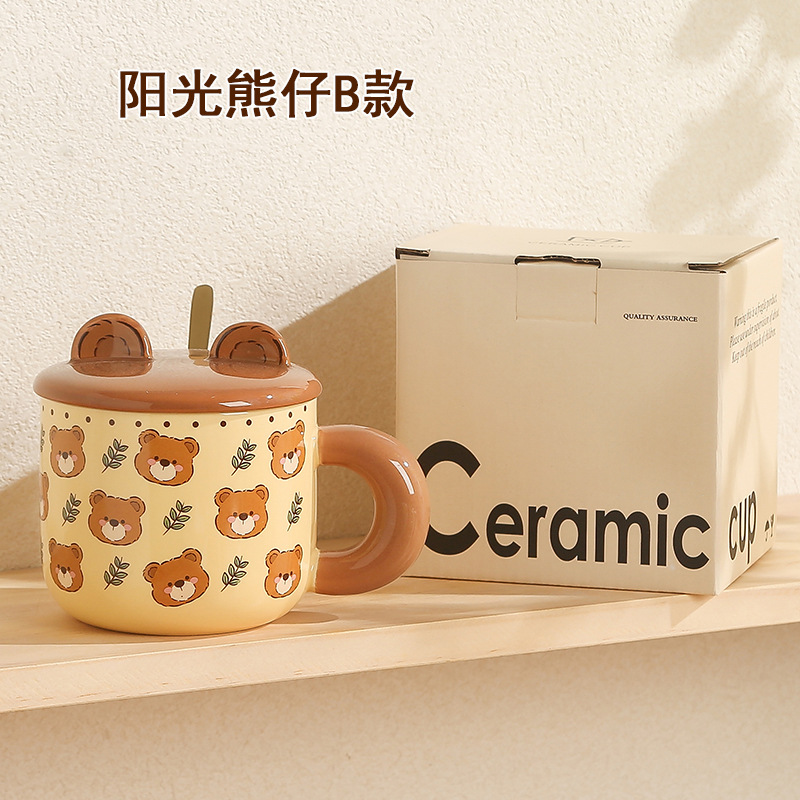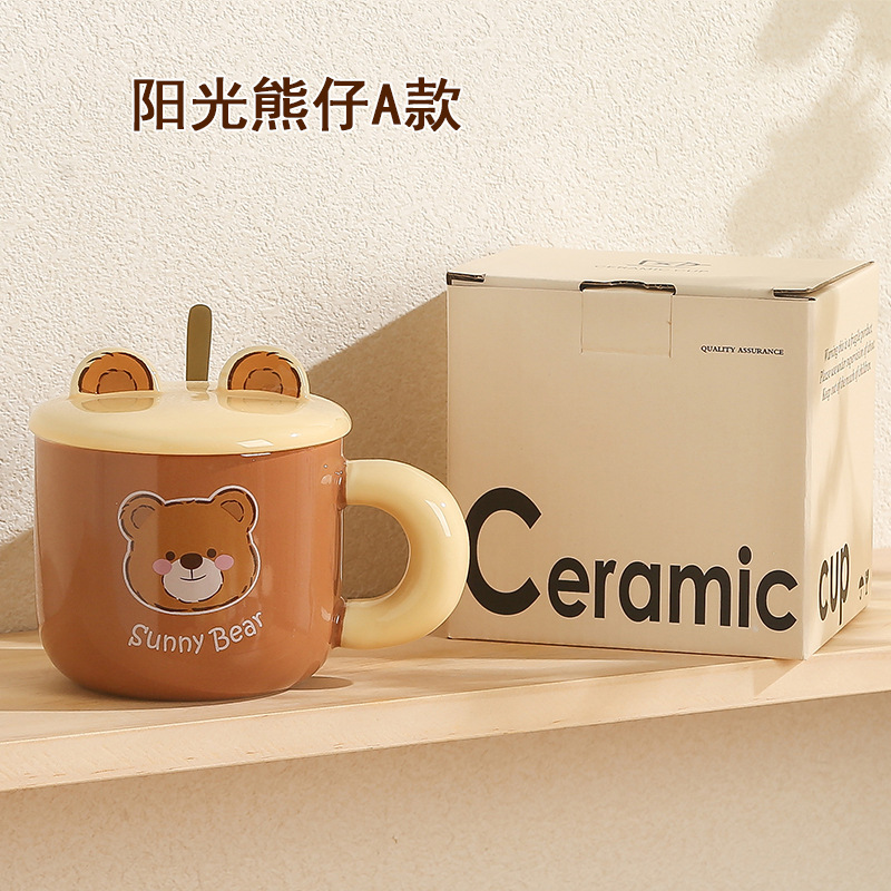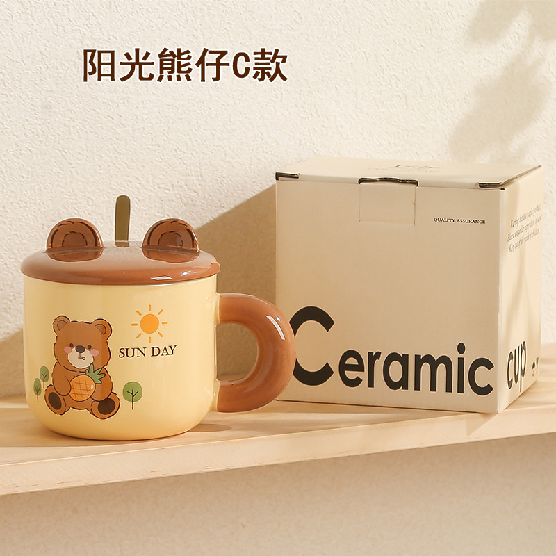 创意小熊卡通陶瓷马克杯咖啡杯水杯带盖勺情侣杯子男生早餐牛奶杯