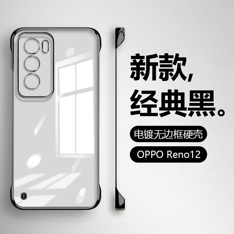 适用OPPOReno12手机壳Reno12Pro超薄透明无边框电镀半包防摔硬壳