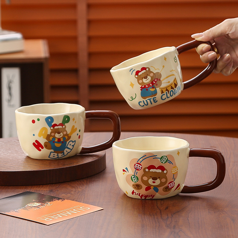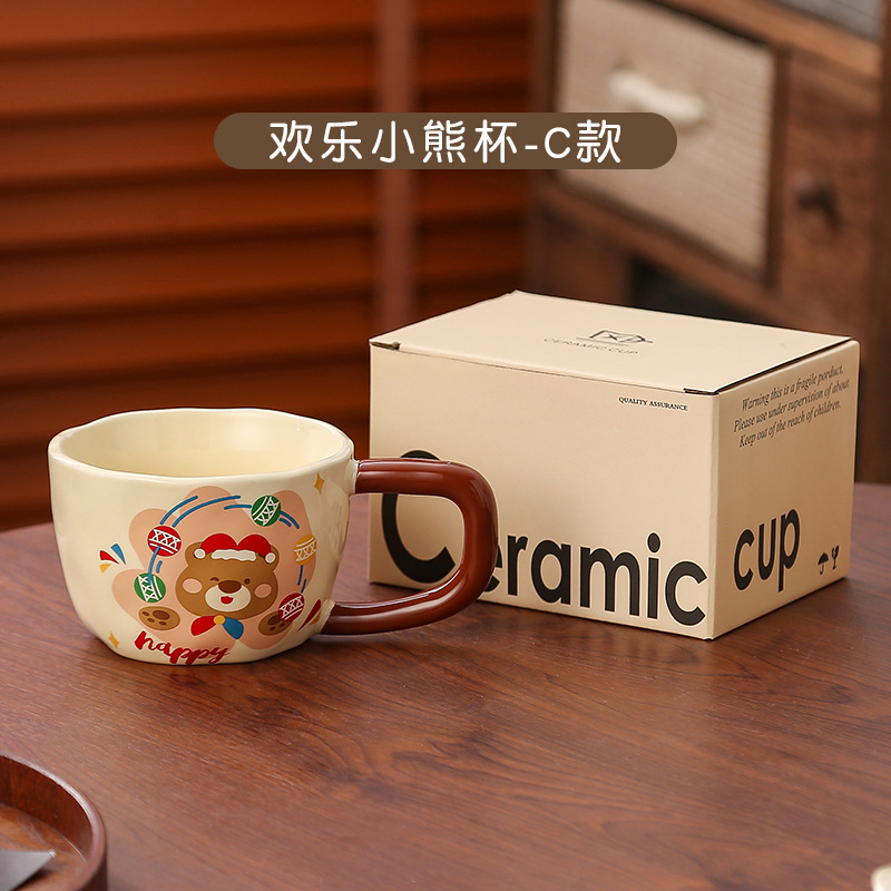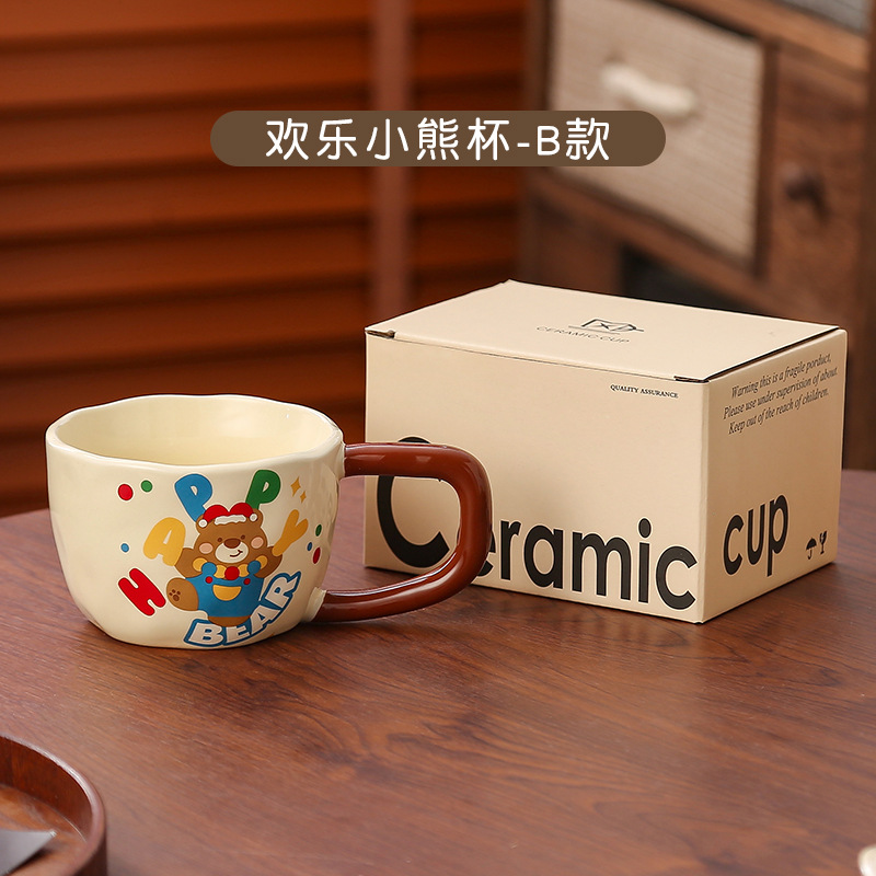 欢乐小熊陶瓷杯大容量卡通情侣马克杯家用可爱耐高温水杯礼盒装
