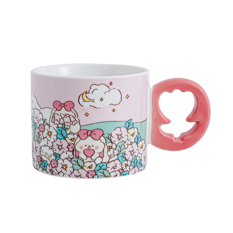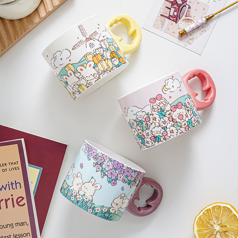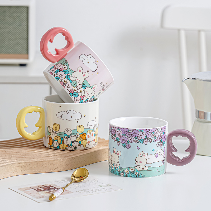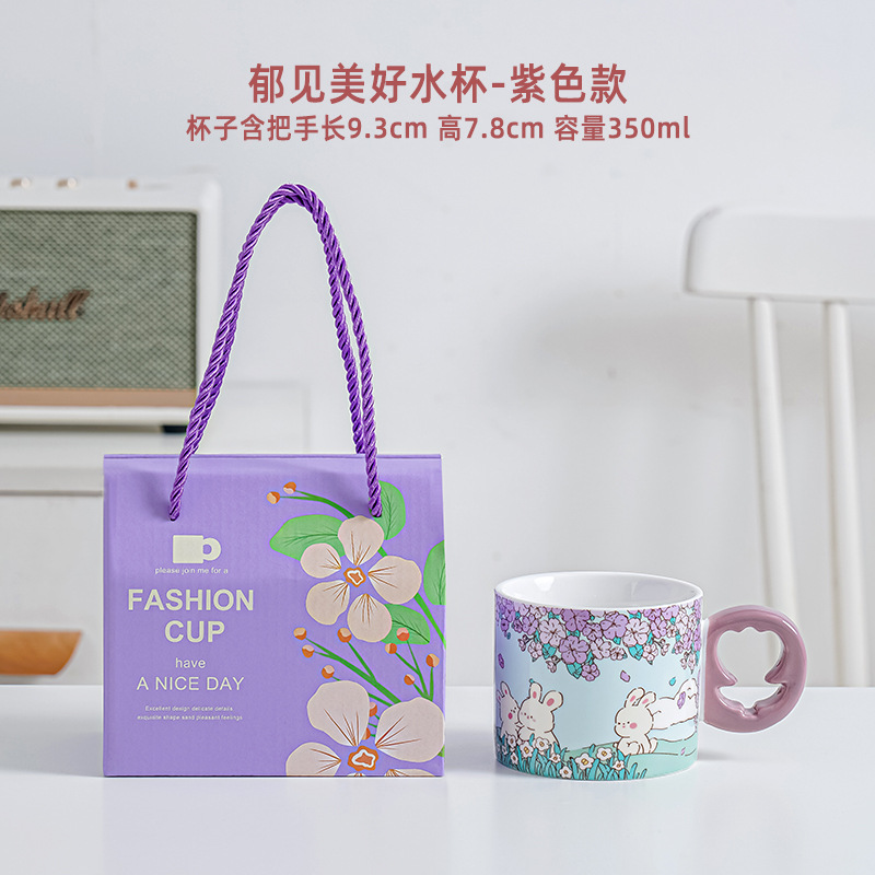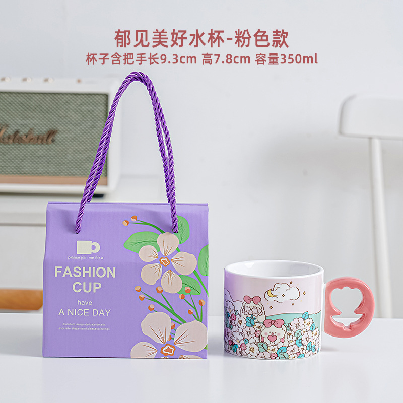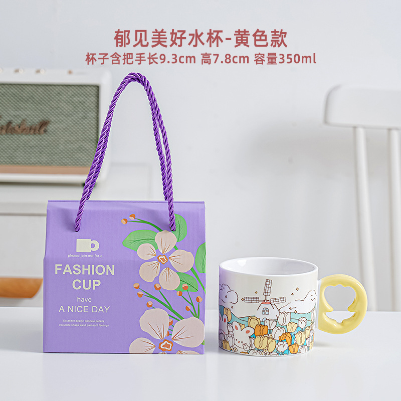 创意郁金香手把杯陶瓷杯ins风少女心马克杯情侣对杯伴手礼礼盒装