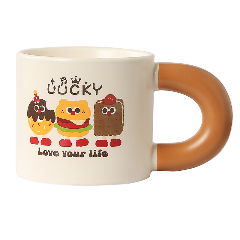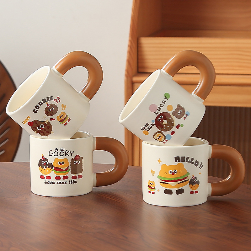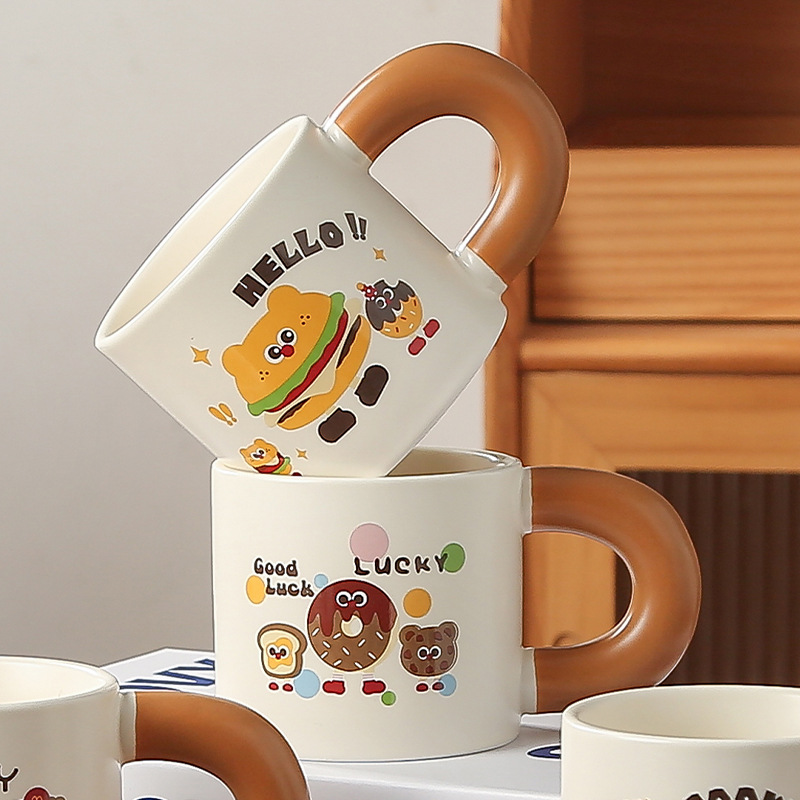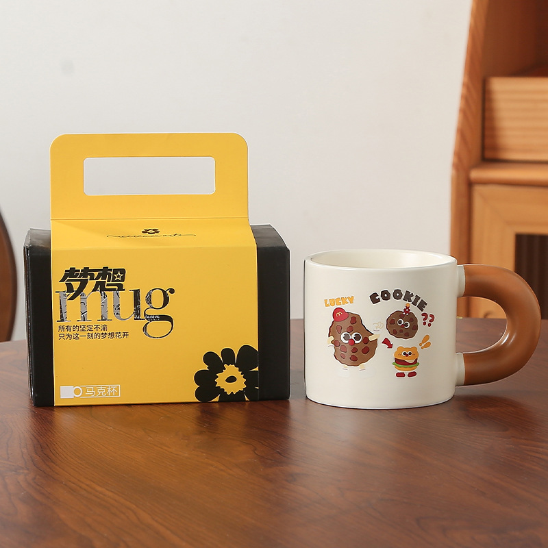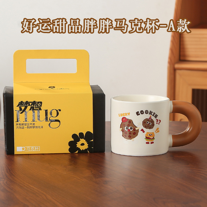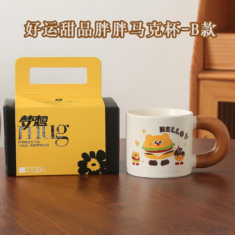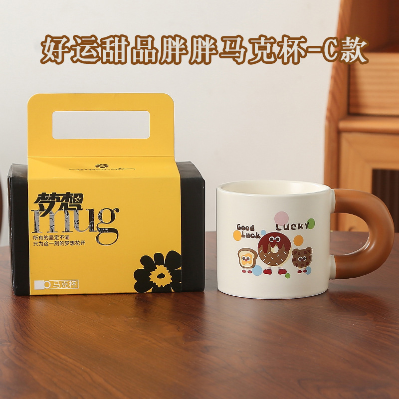 高颜值可爱马克杯家用办公室陶瓷水杯咖啡杯撞色胖手把杯子礼盒装