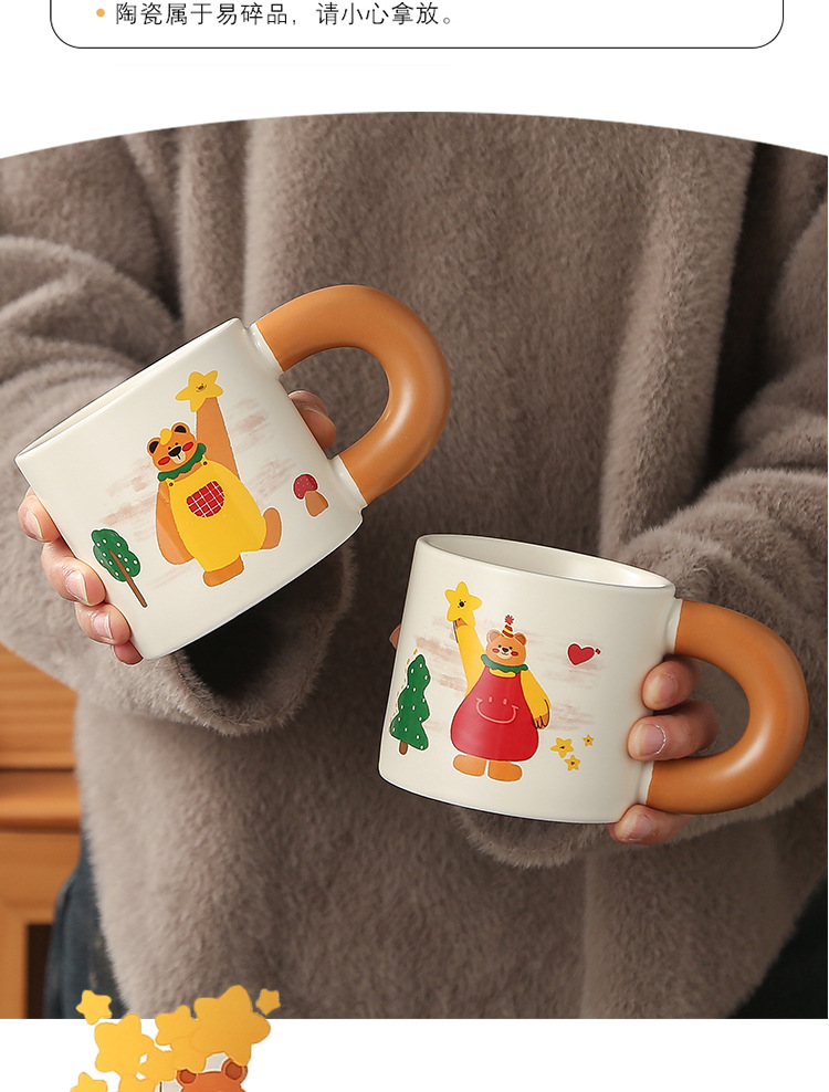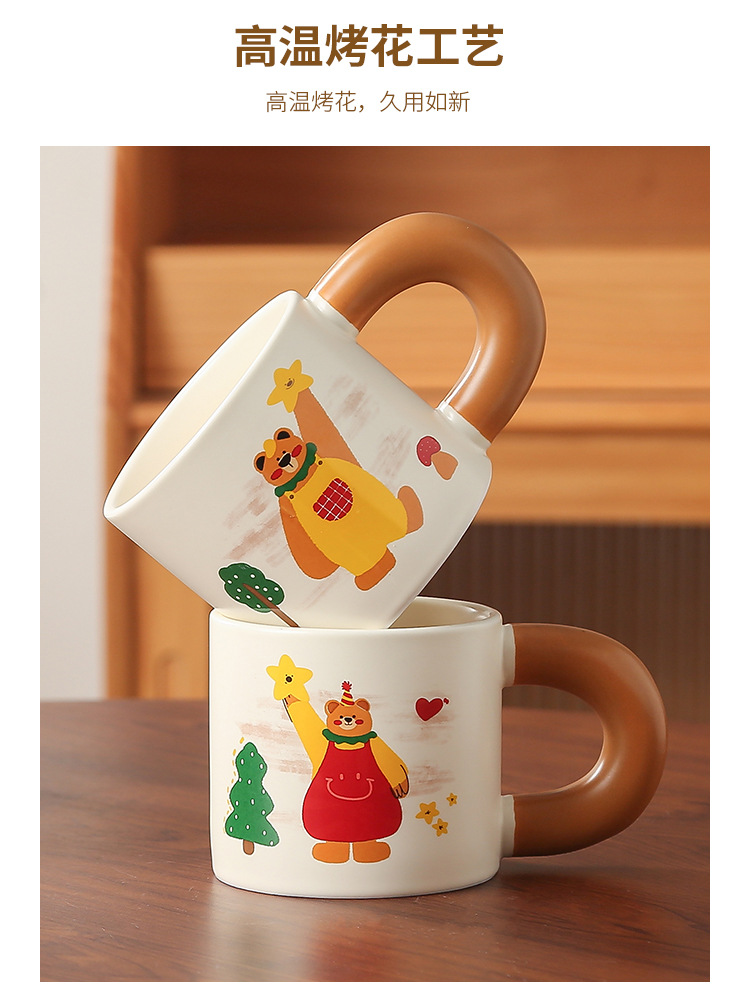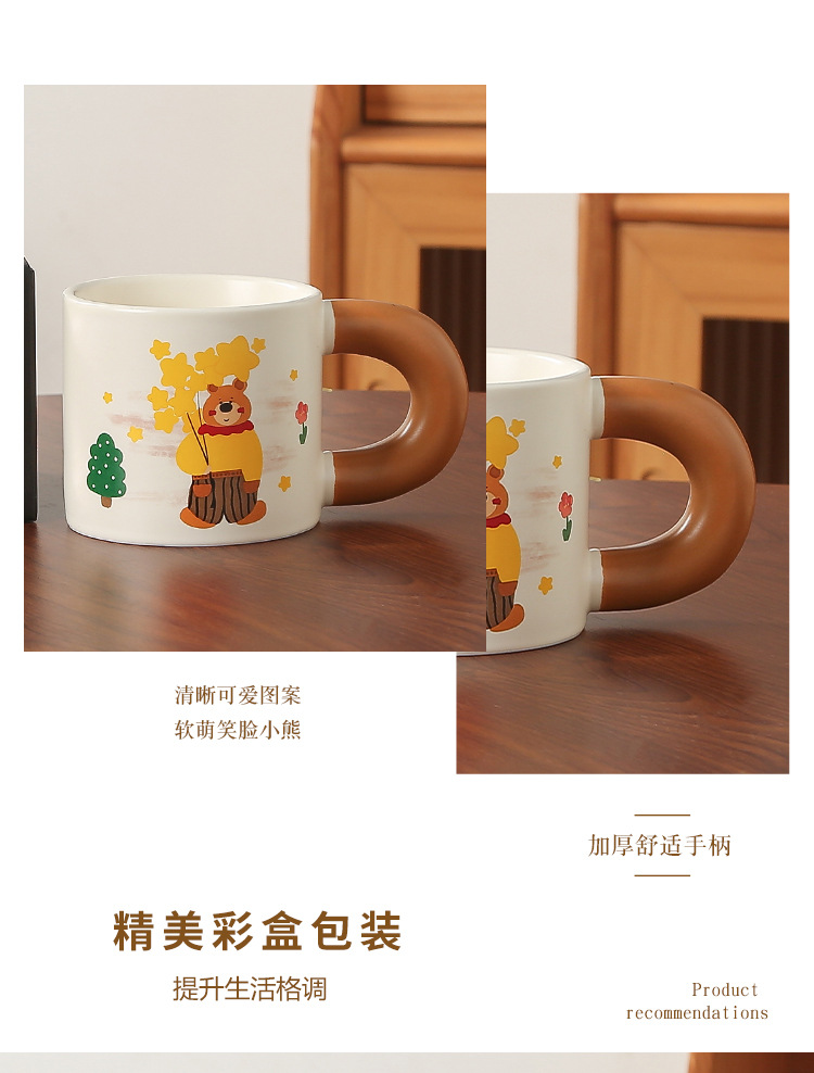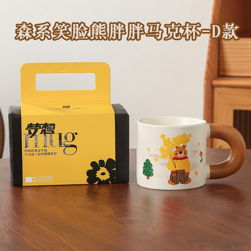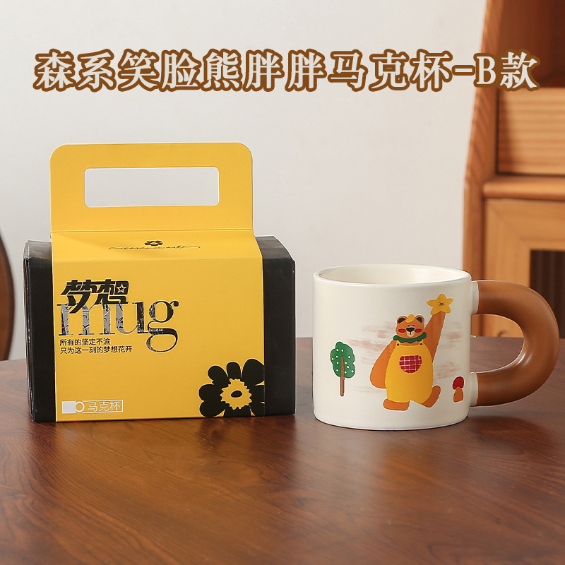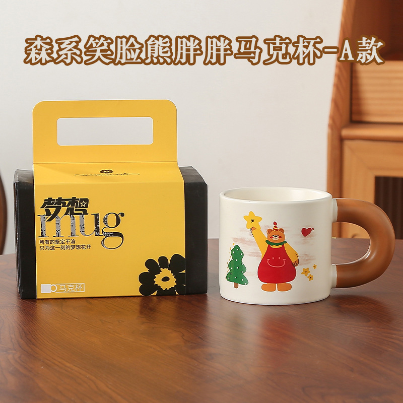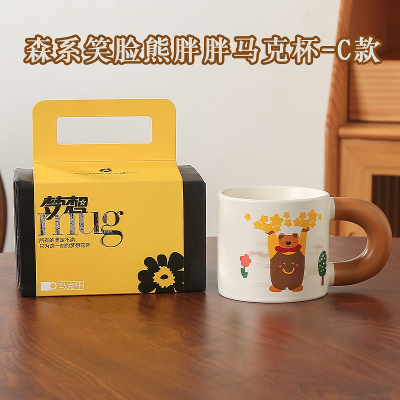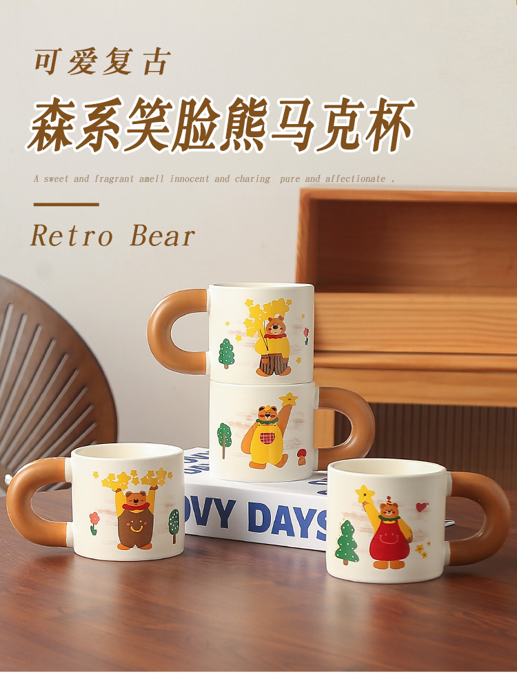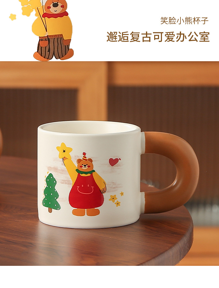 陶瓷杯复古创意笑脸熊马克杯送女生家用高颜值大耳朵喝水杯礼盒