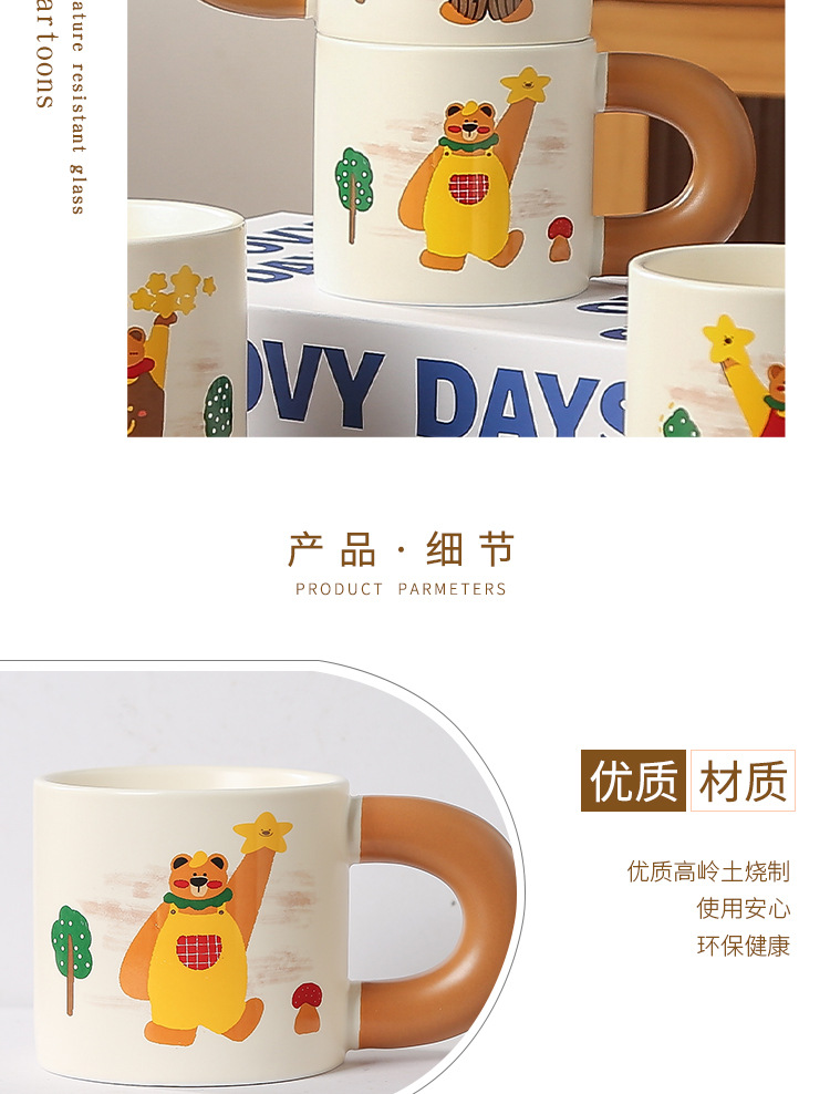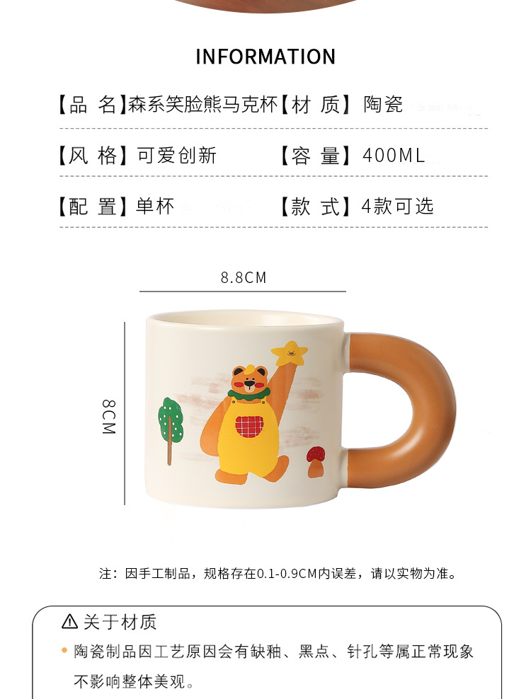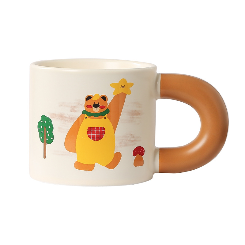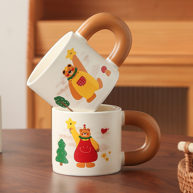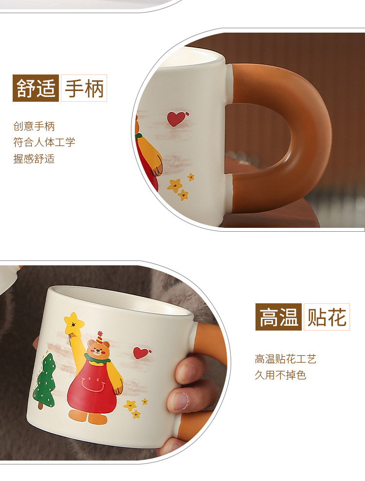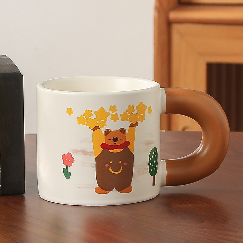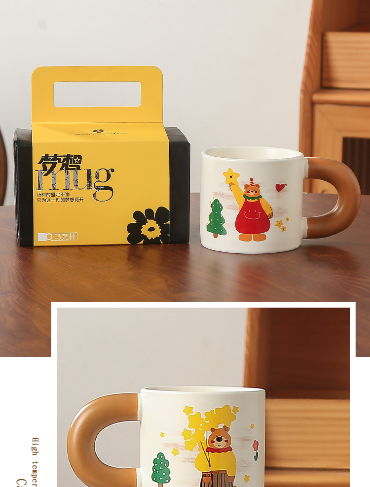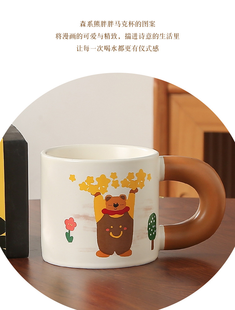 陶瓷杯复古创意笑脸熊马克杯送女生家用高颜值大耳朵喝水杯礼盒