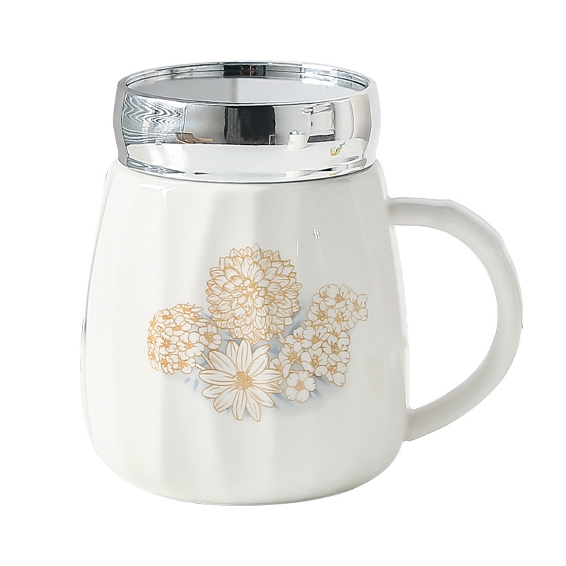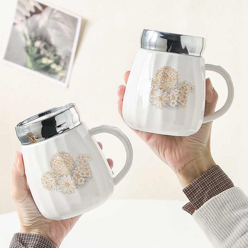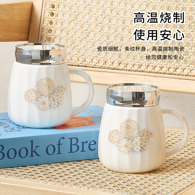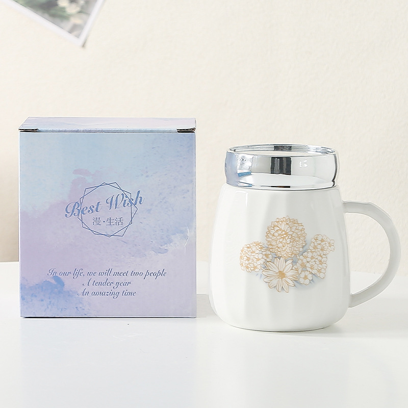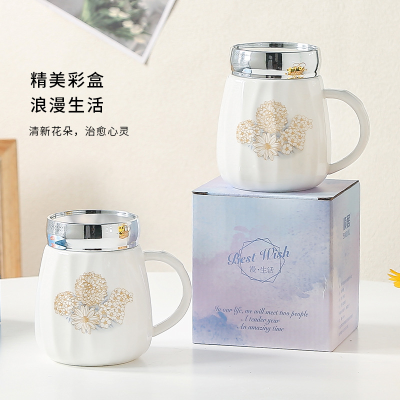 花朵镜面陶瓷水杯简约花卉马克杯家用办公室马克杯早餐杯礼盒装