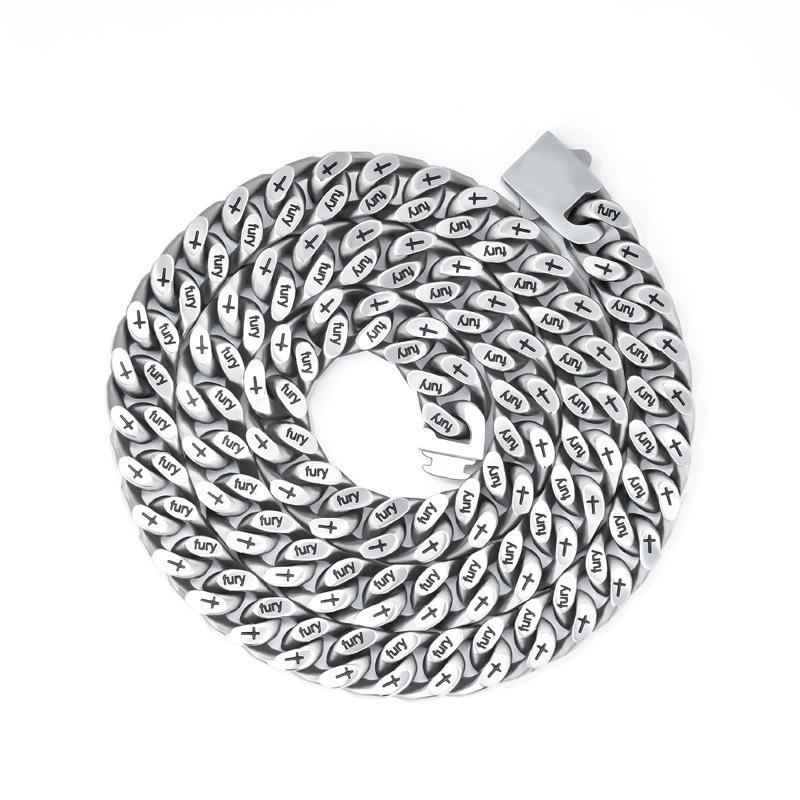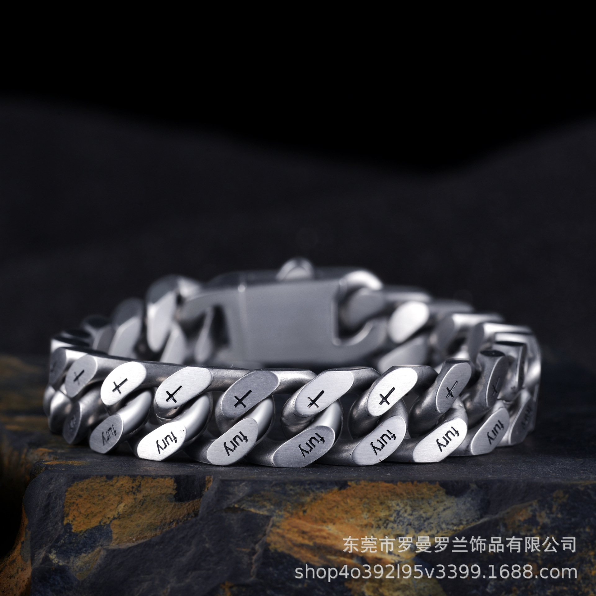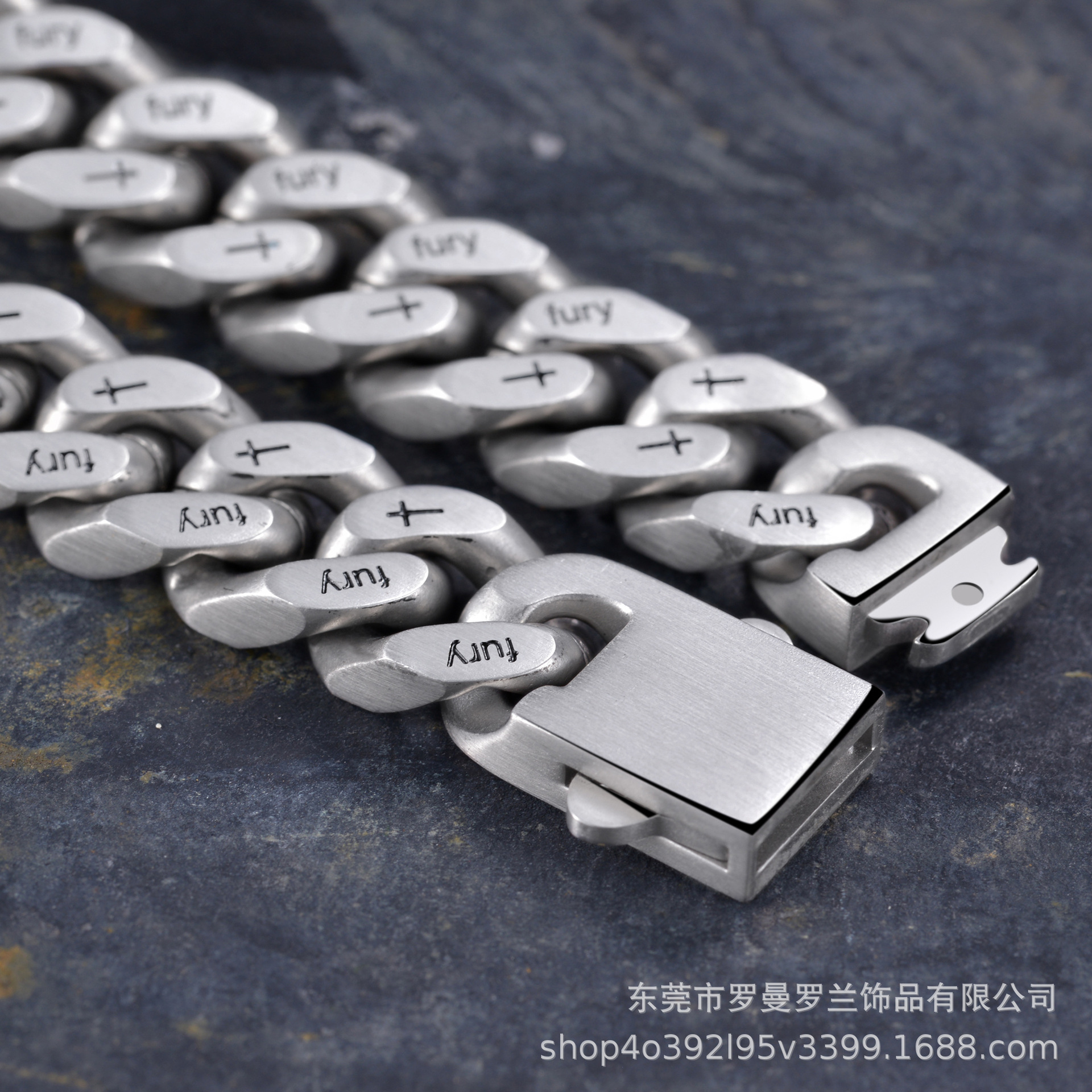 欧美小众设计嘻哈古巴手链男士钛钢高街潮流拉砂刻字项链配饰