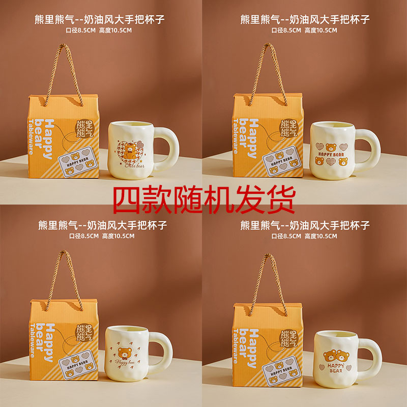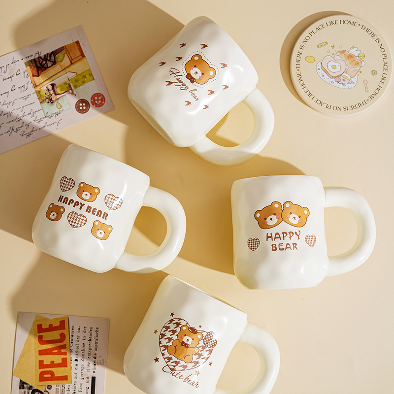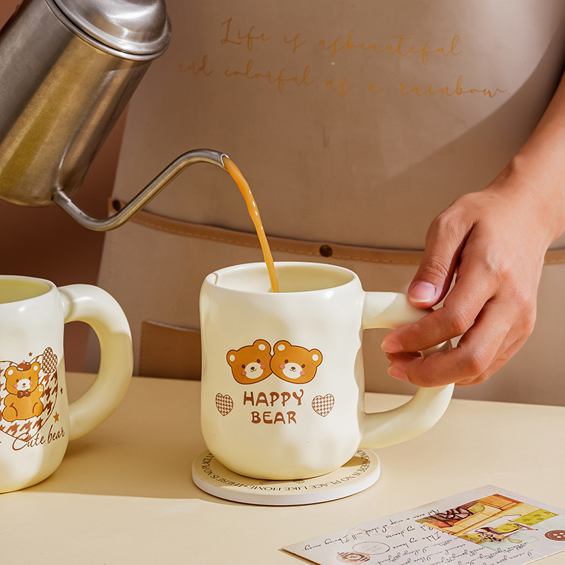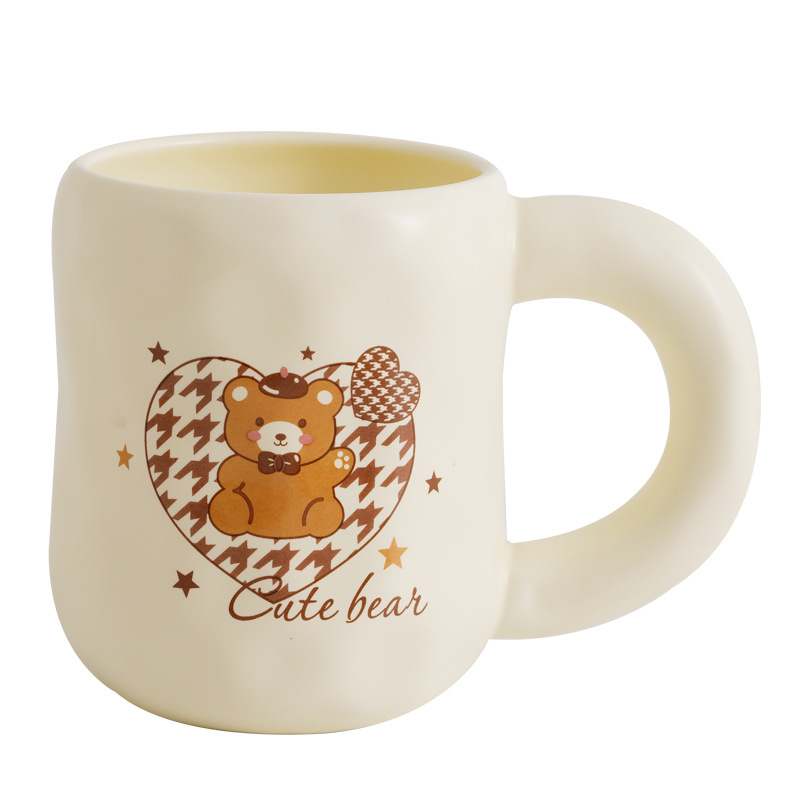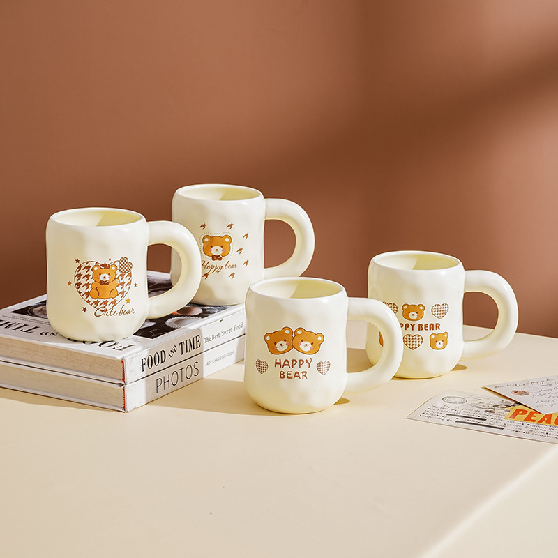 高颜值奶油风小熊陶瓷水杯家用咖啡杯牛奶杯耐高温情侣马克杯