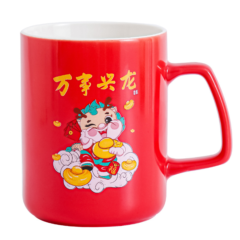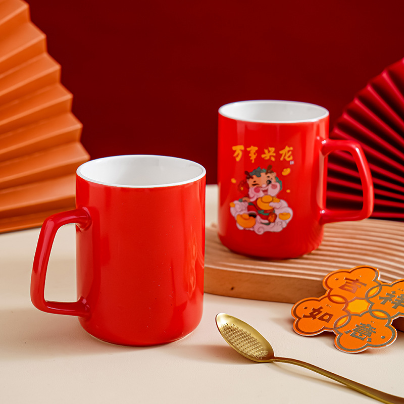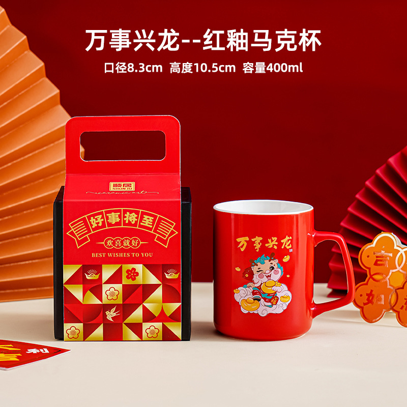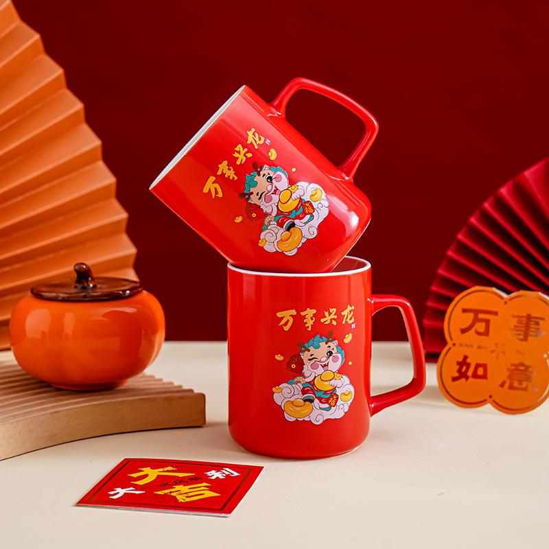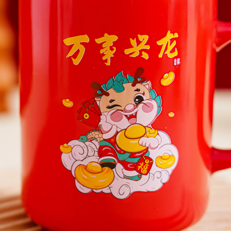 开门红龙年陶瓷水杯创意卡通马克杯过年送礼伴手礼礼品杯礼盒装