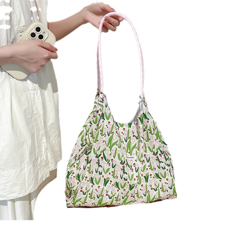 夏季新品小众设计大容量休闲帆布包甜美碎花单肩包时尚手提托特包