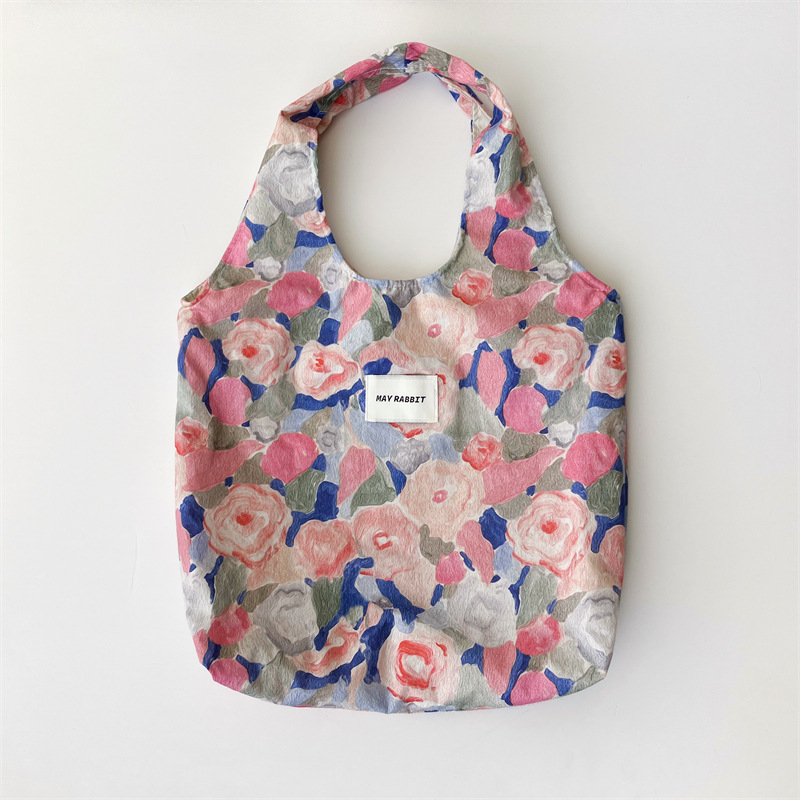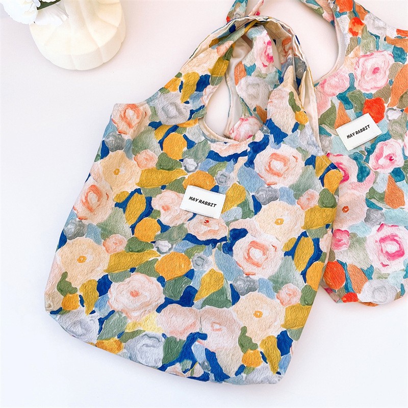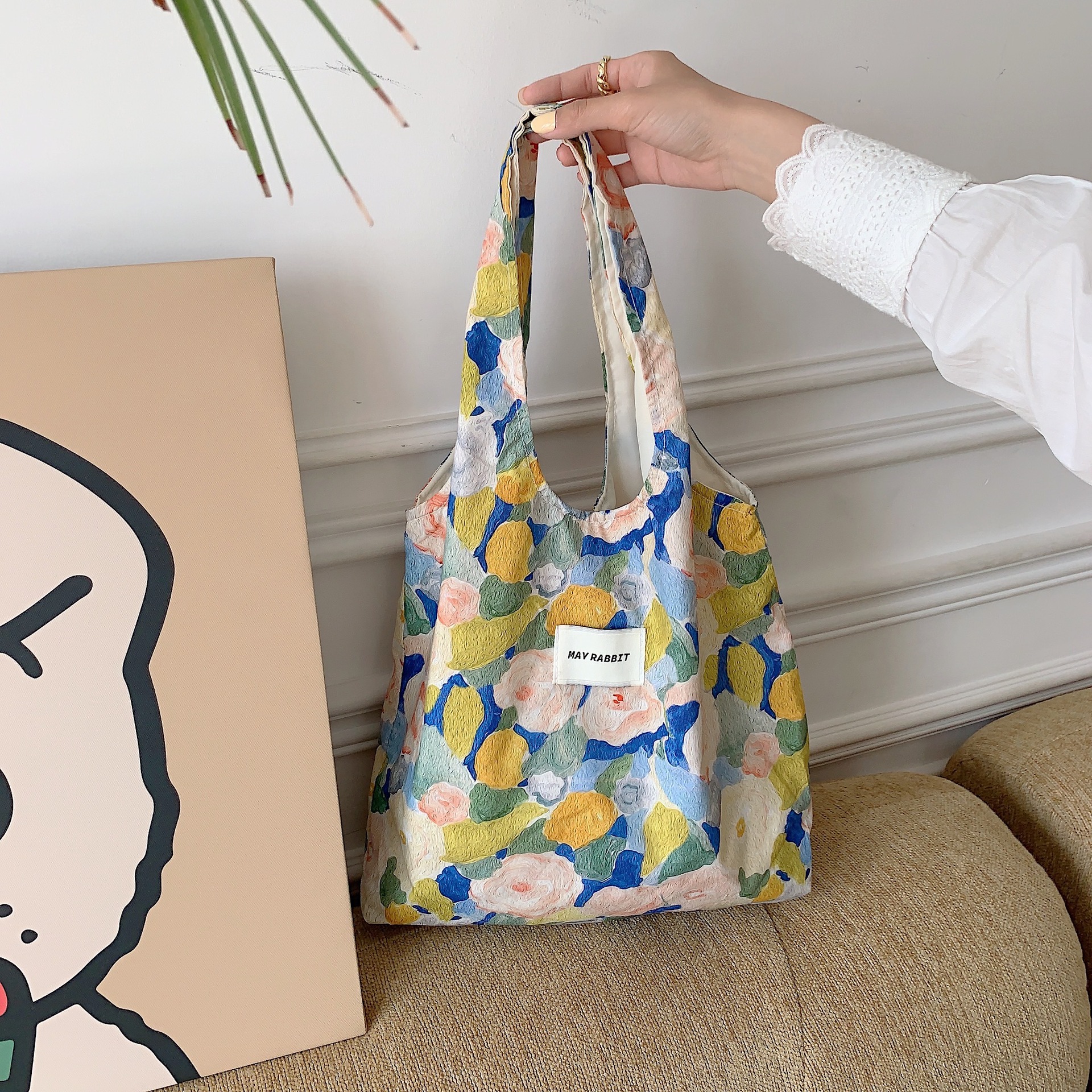 ins复古油画花朵帆布袋休闲单肩包布袋手提大包学生甜美背心包潮