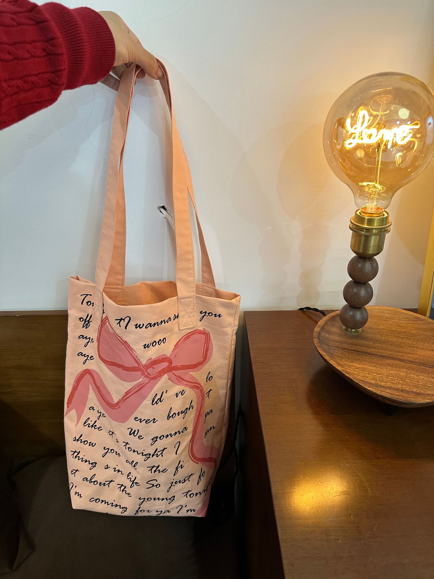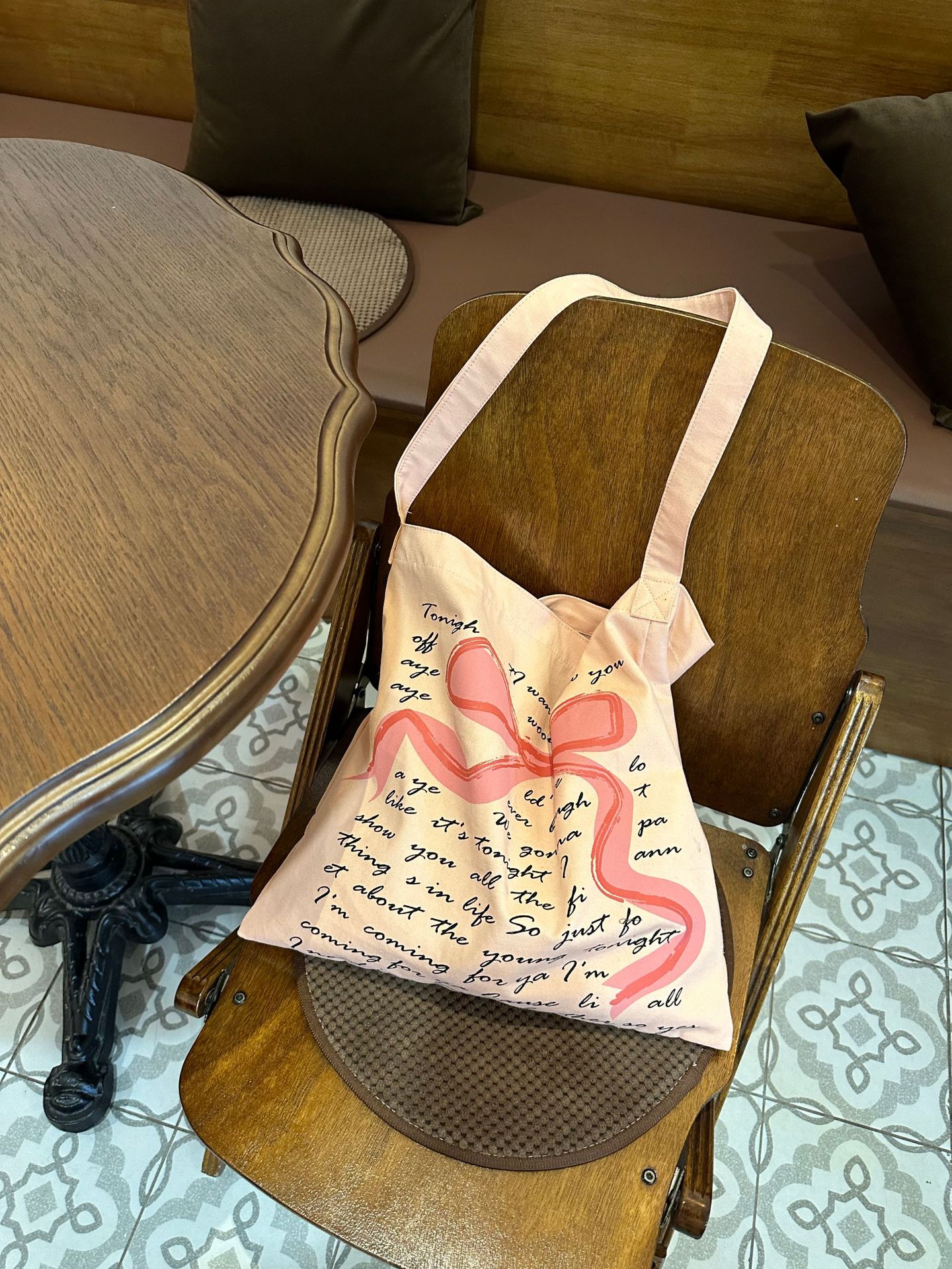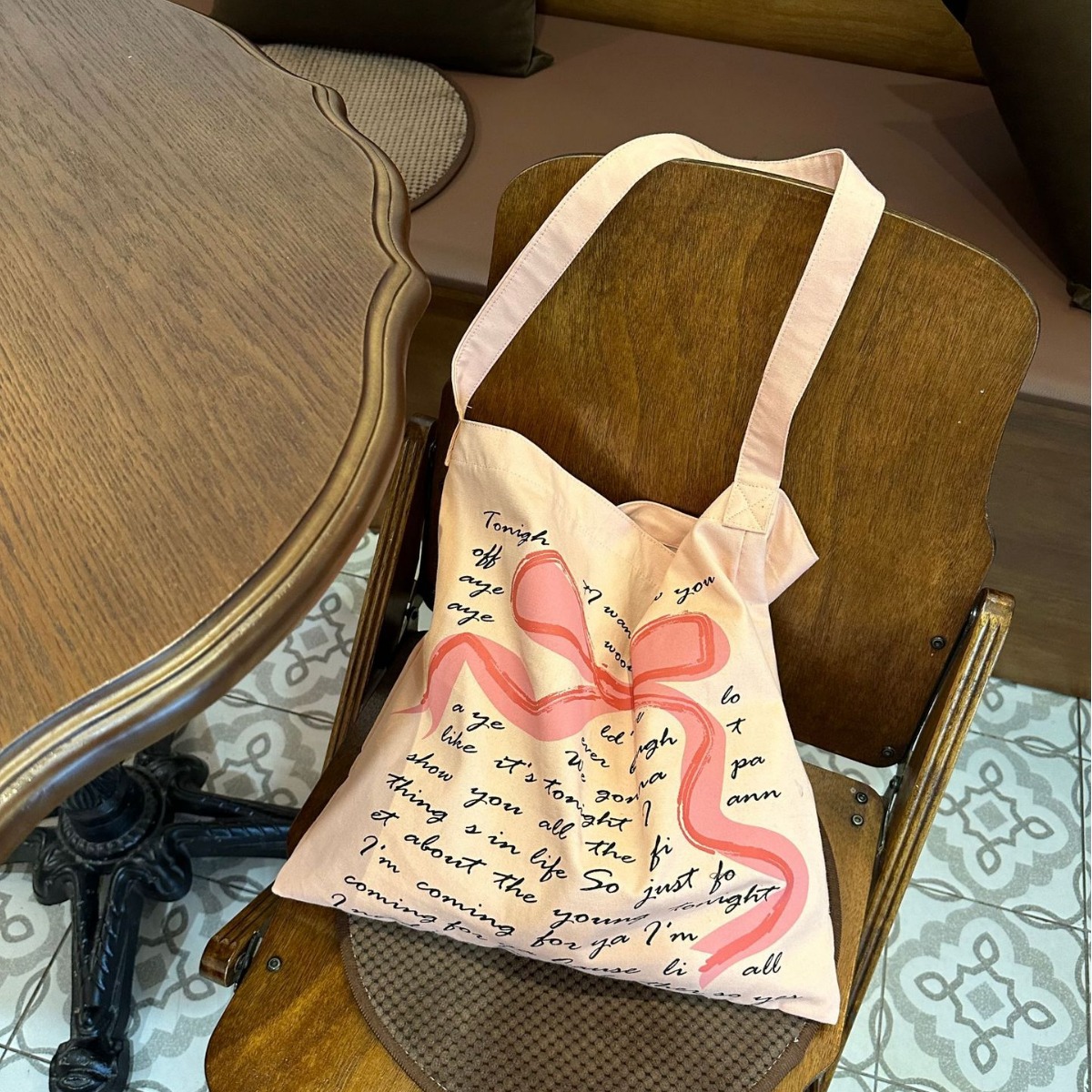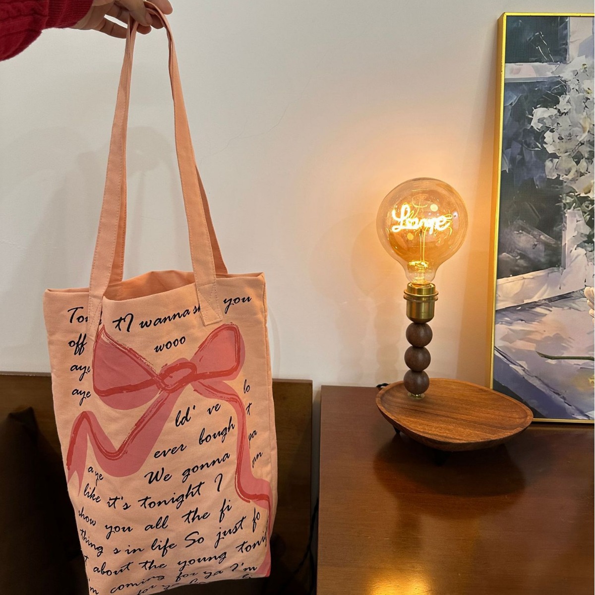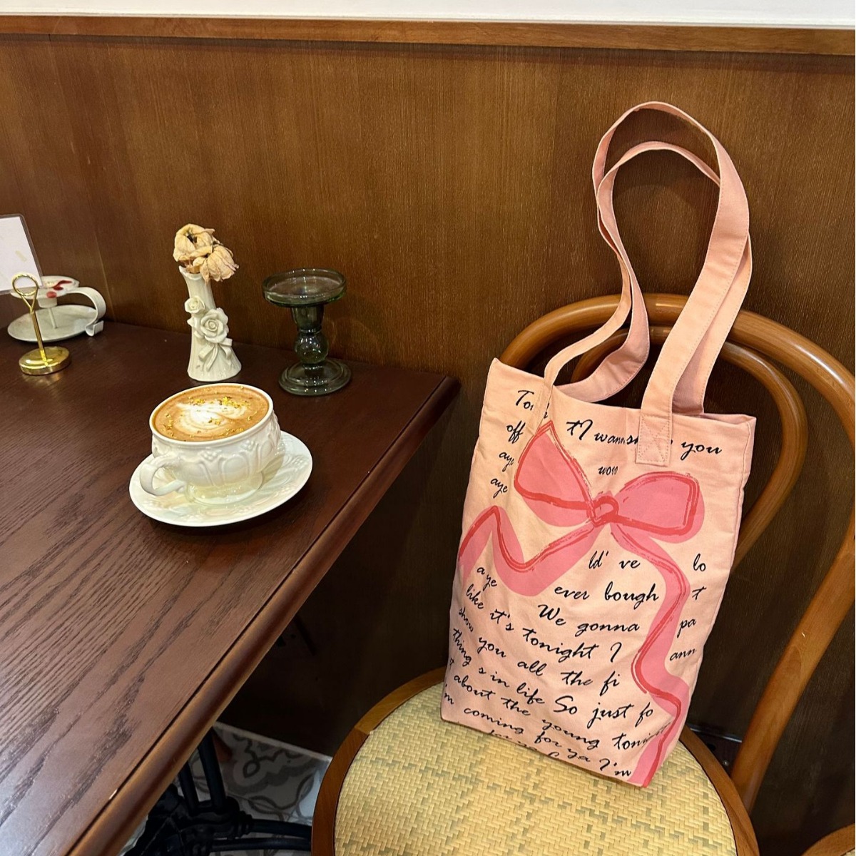 韩国ins女学生粉色小众设计蝴蝶结斜挎包单肩包高级感帆布包