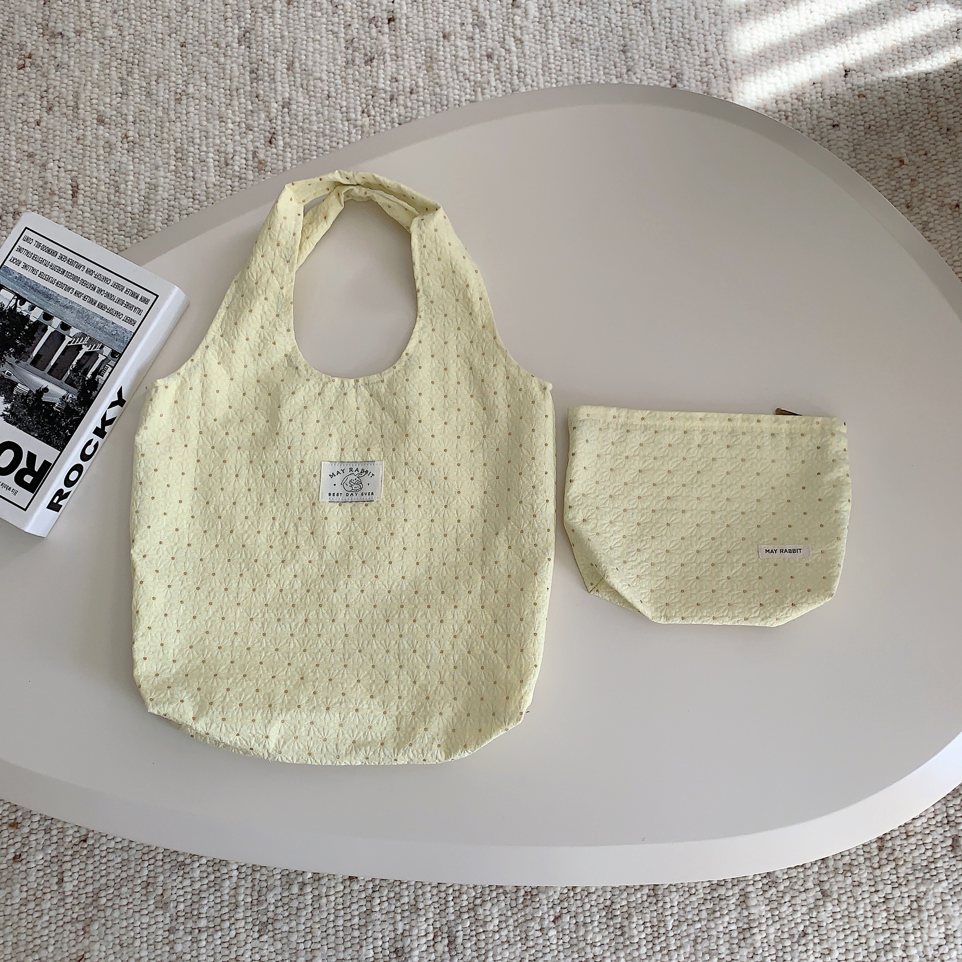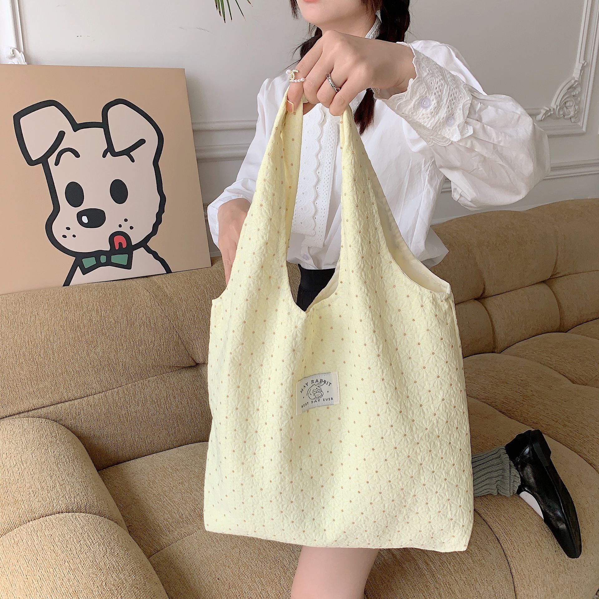 MAY RABBIT鹅黄雏菊背心包单肩帆布包学生上课包大容量布包购物袋